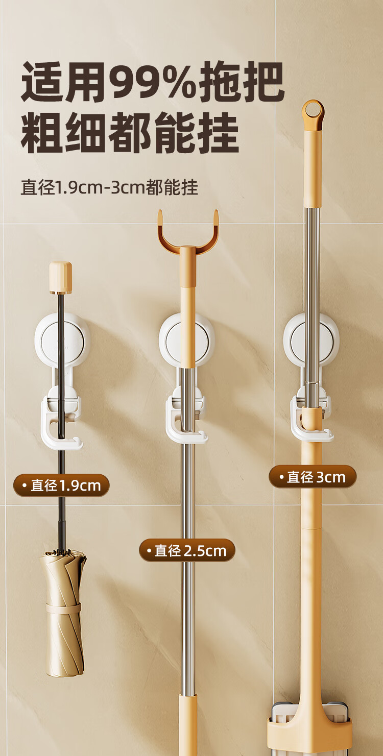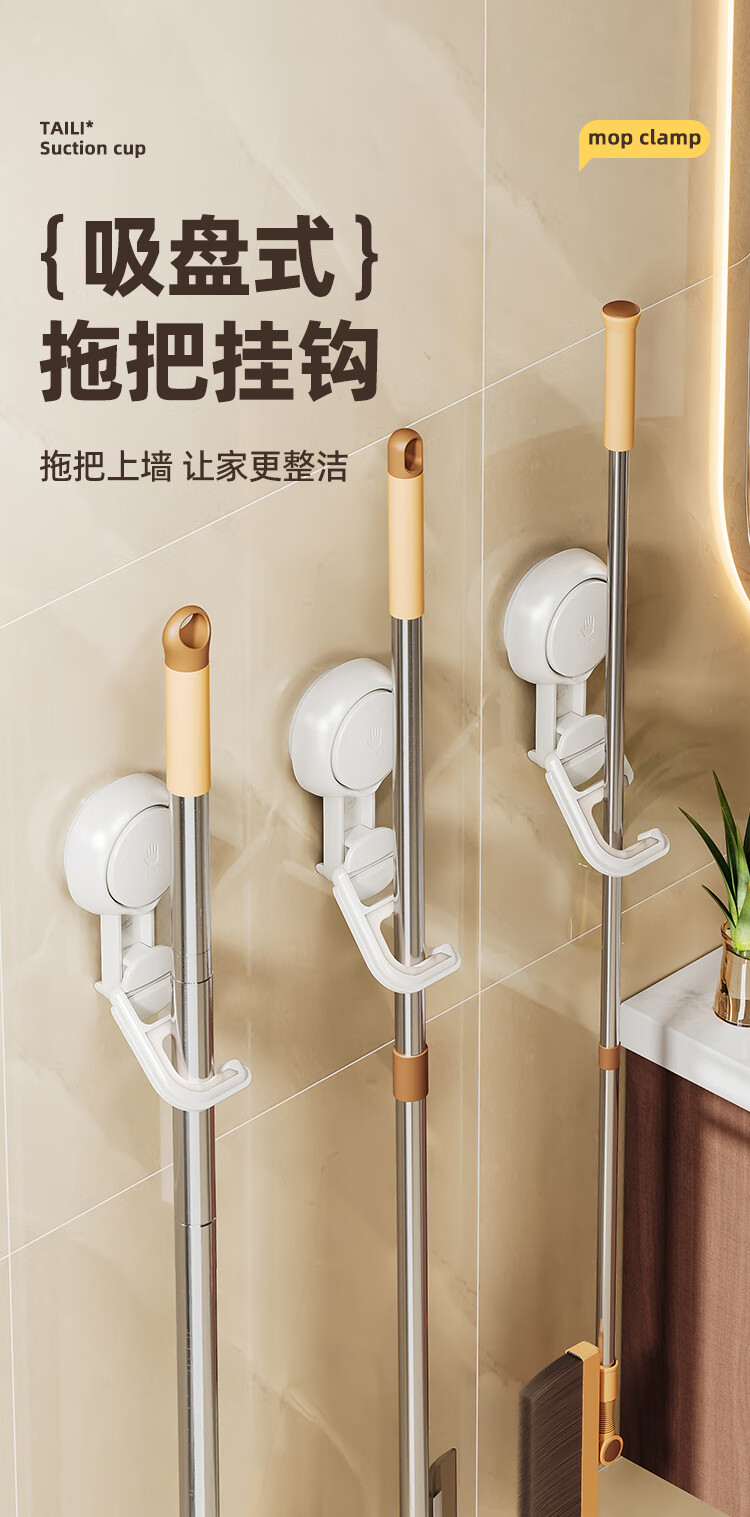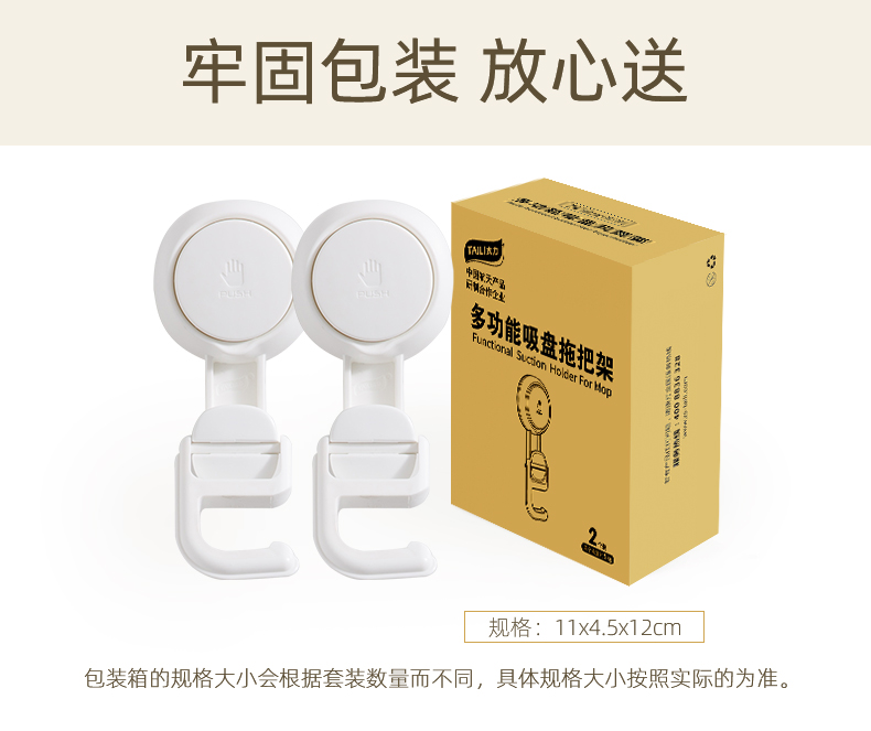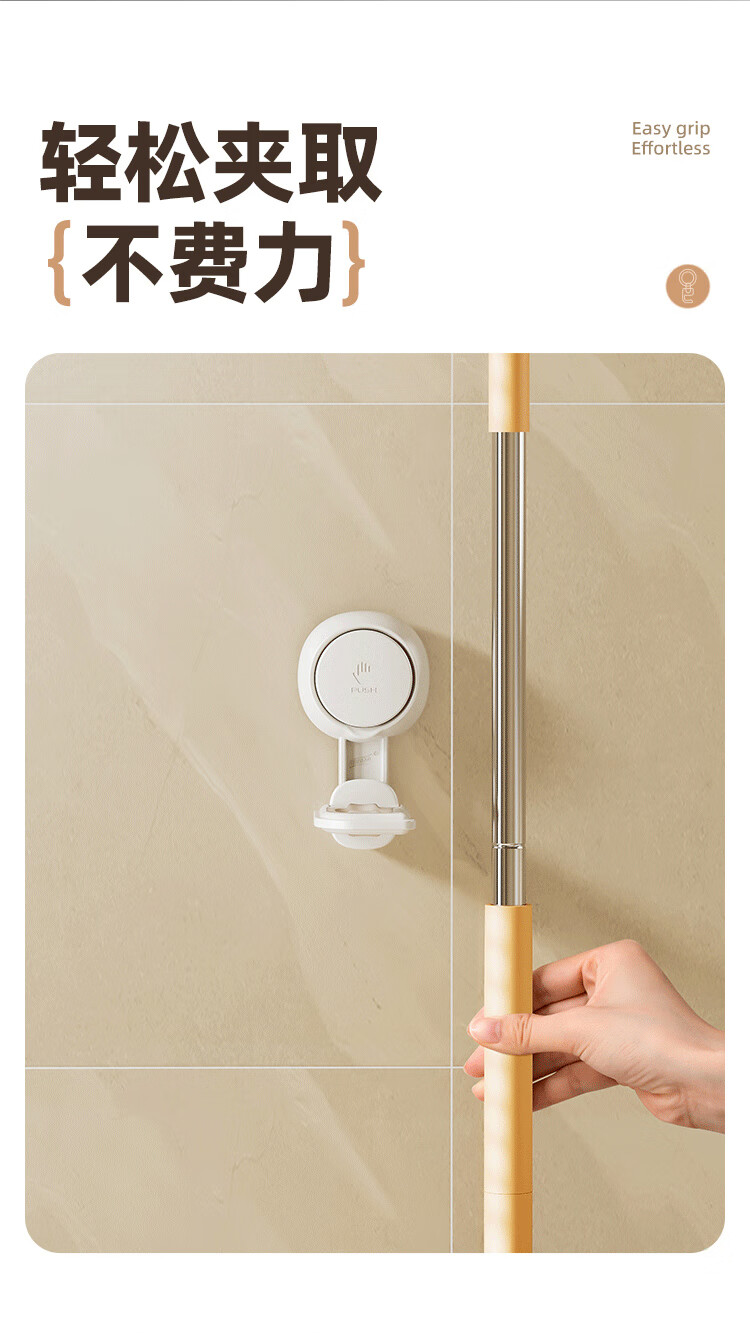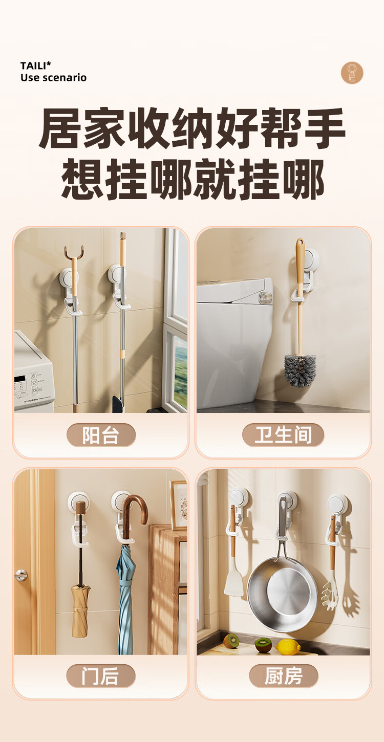 太力吸盘拖把挂钩架夹免打孔上墙浴室卫生间强力粘钩置物架神器 2个装