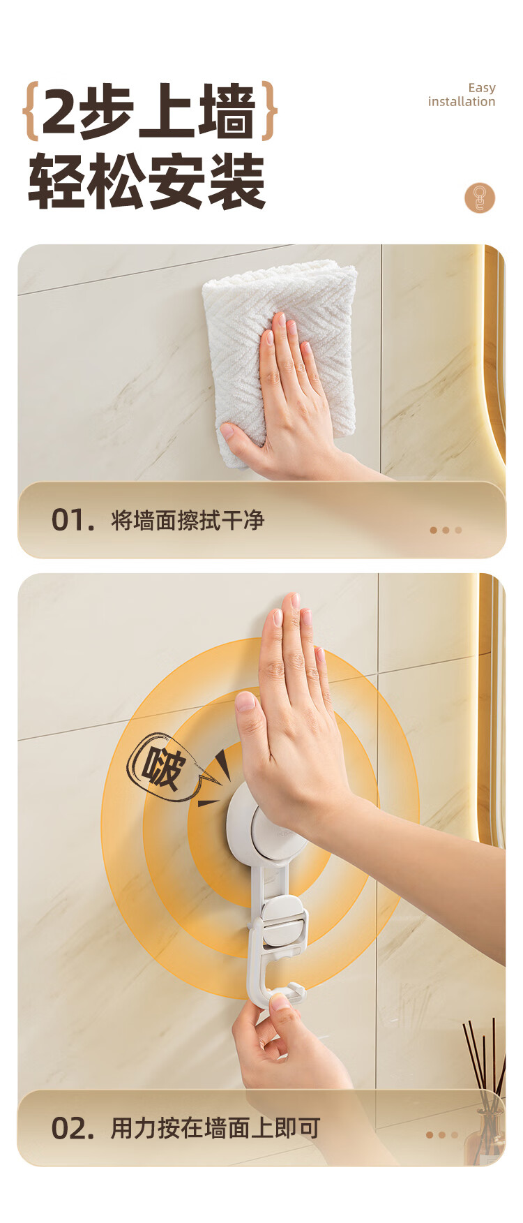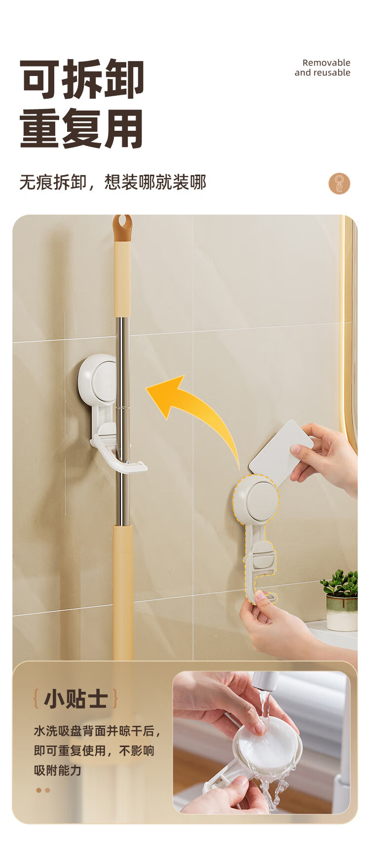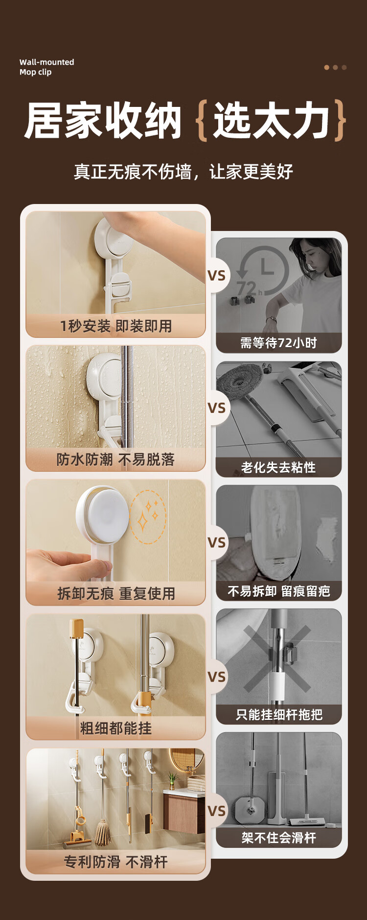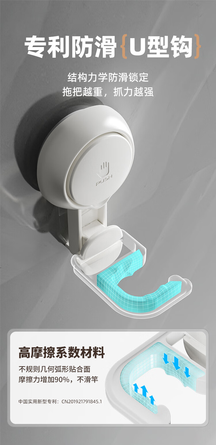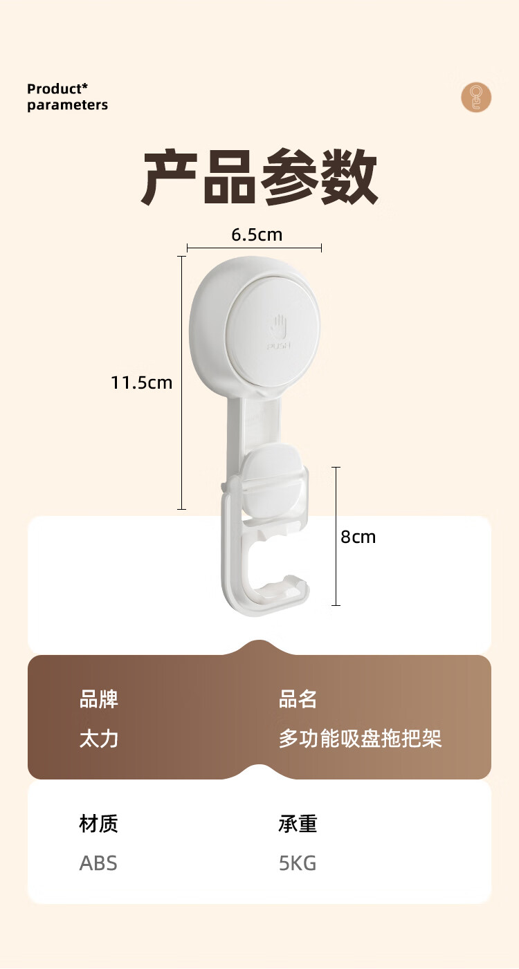 太力吸盘拖把挂钩架夹免打孔上墙浴室卫生间强力粘钩置物架神器 2个装