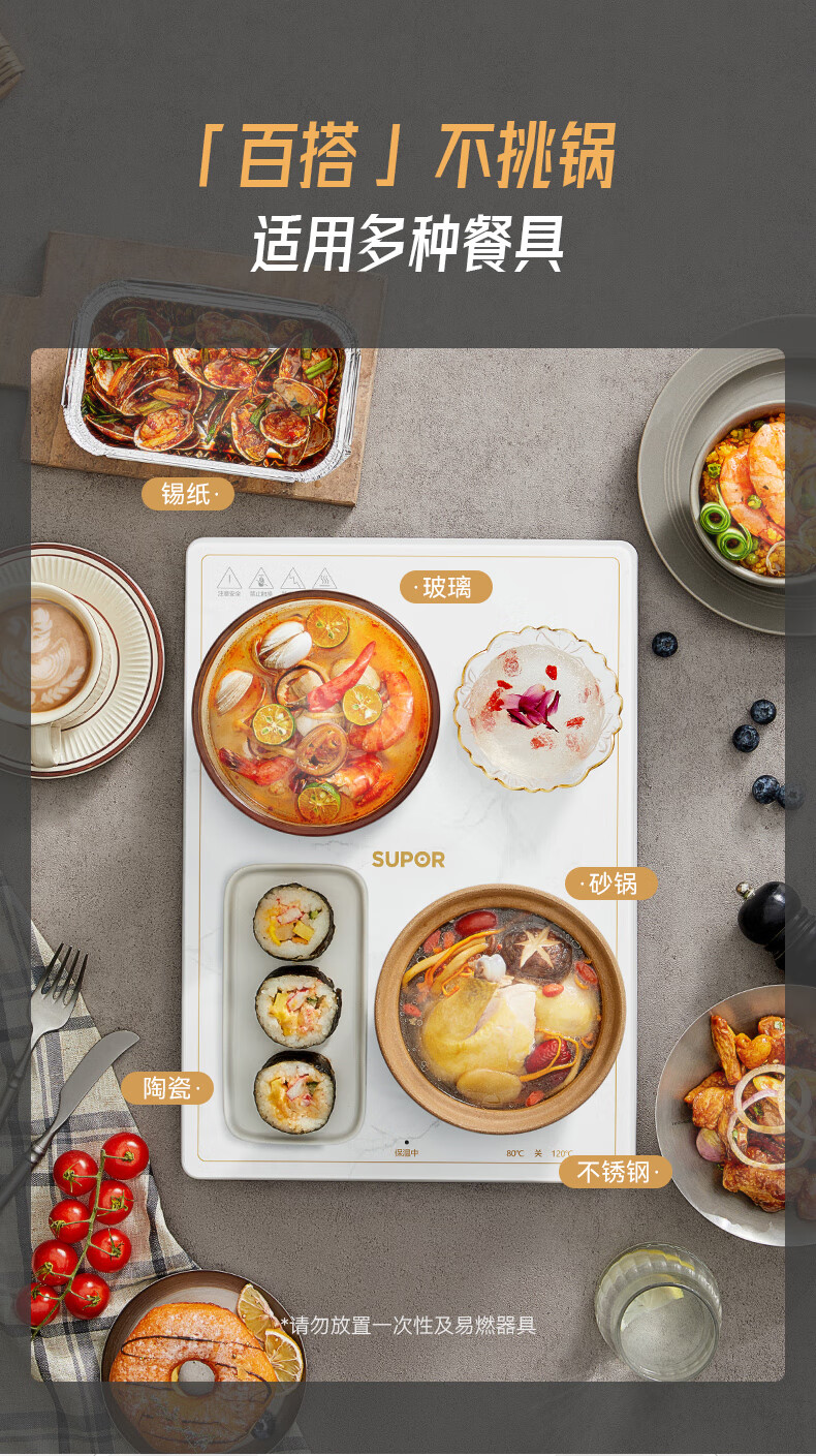 苏泊尔(SUPOR)【国家补贴】暖菜板饭菜保温板热菜板加热桌垫 烘干发酵解冻双档调温多功能加热板BF4028A803