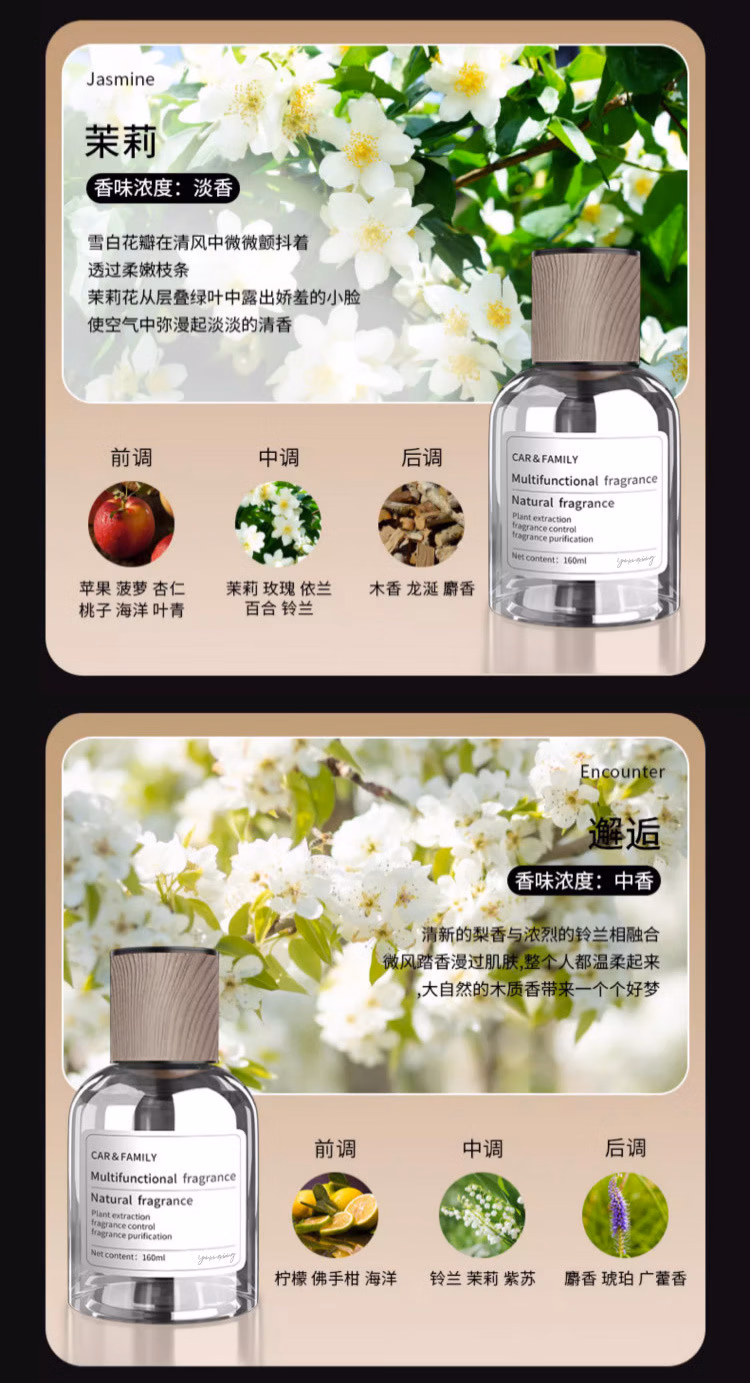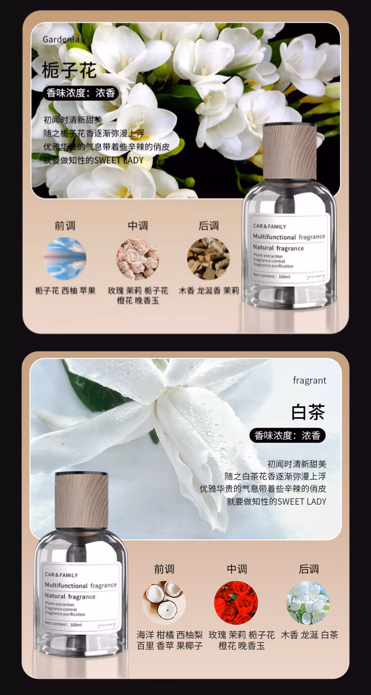 博沂栀子花车载香薰汽车香水车用持久淡香氛车内除异味感可用 茶香 2瓶装