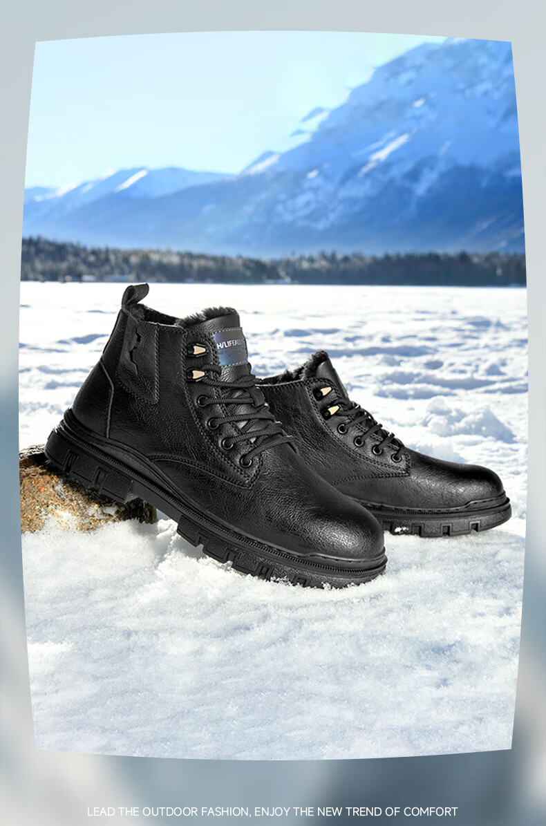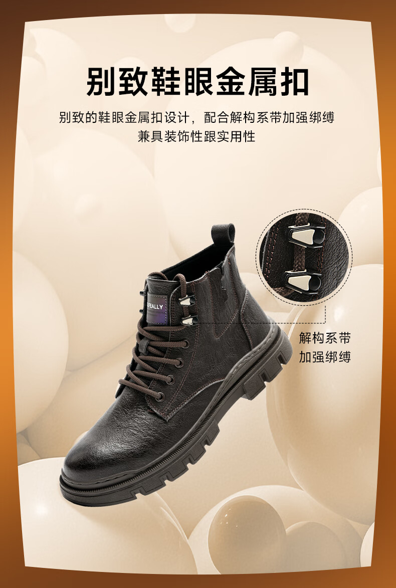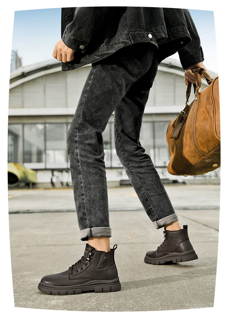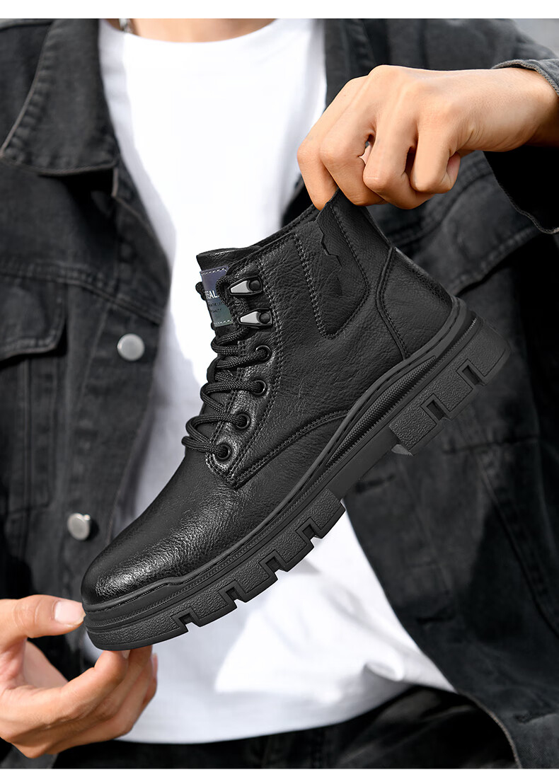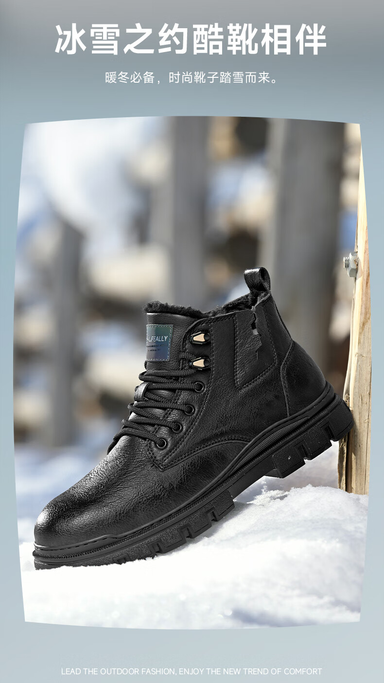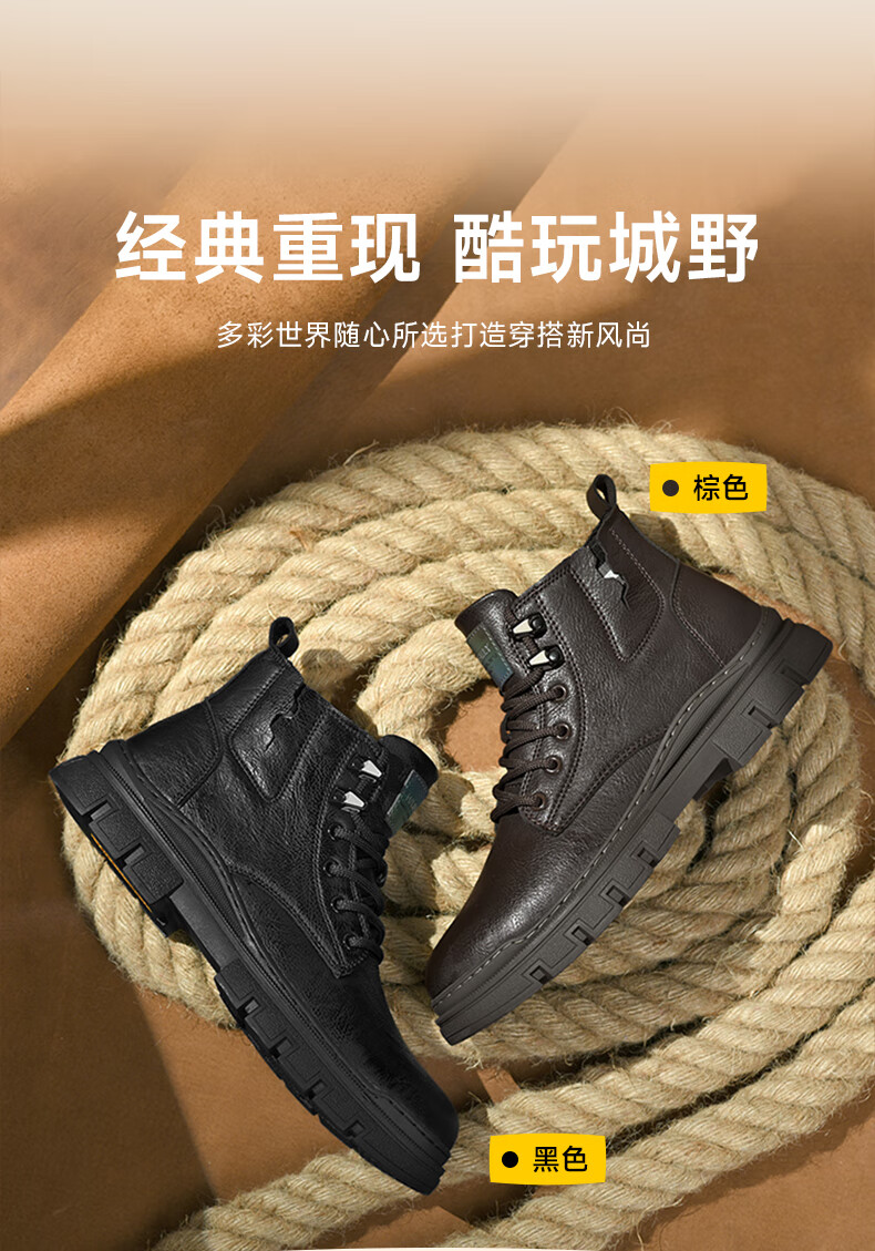 海澜之家HLA马丁靴男户外休闲英伦风百搭工装靴HAAGZM4AB70567 黑色加绒42