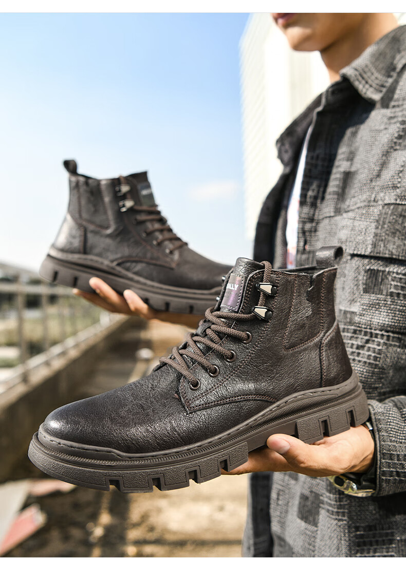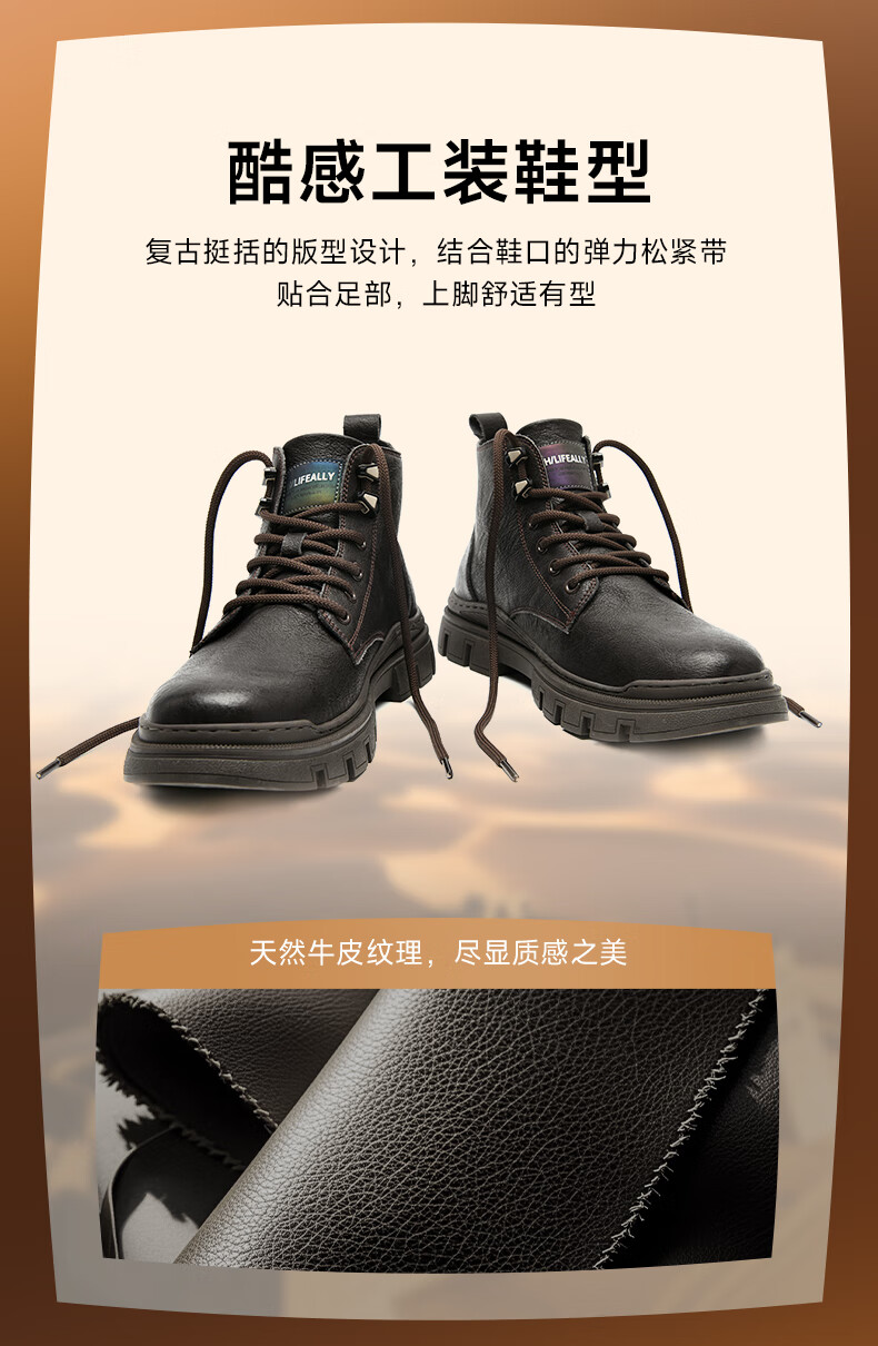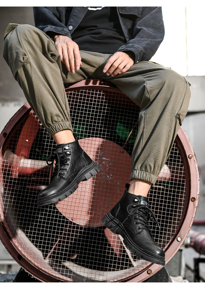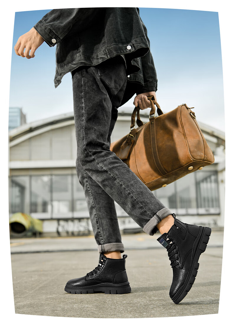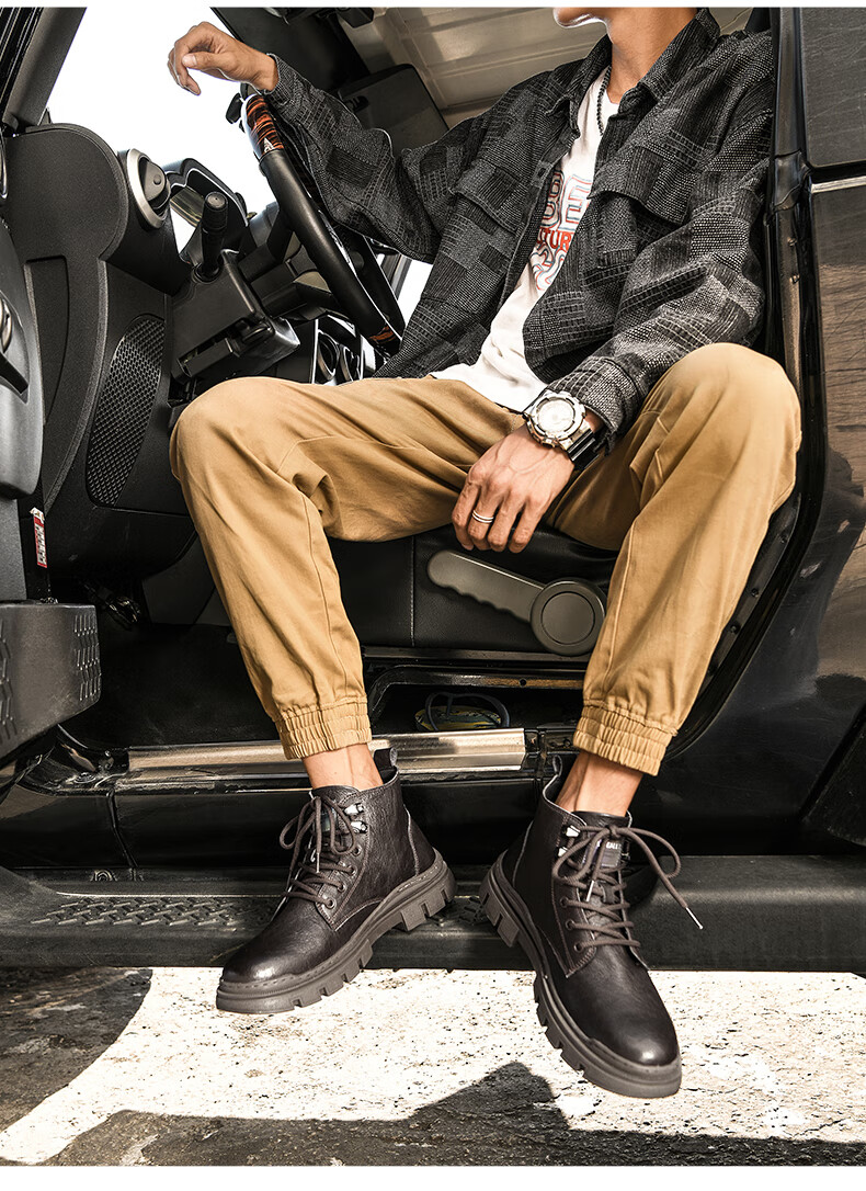 海澜之家HLA马丁靴男户外休闲英伦风百搭工装靴HAAGZM4AB70567 黑色加绒42