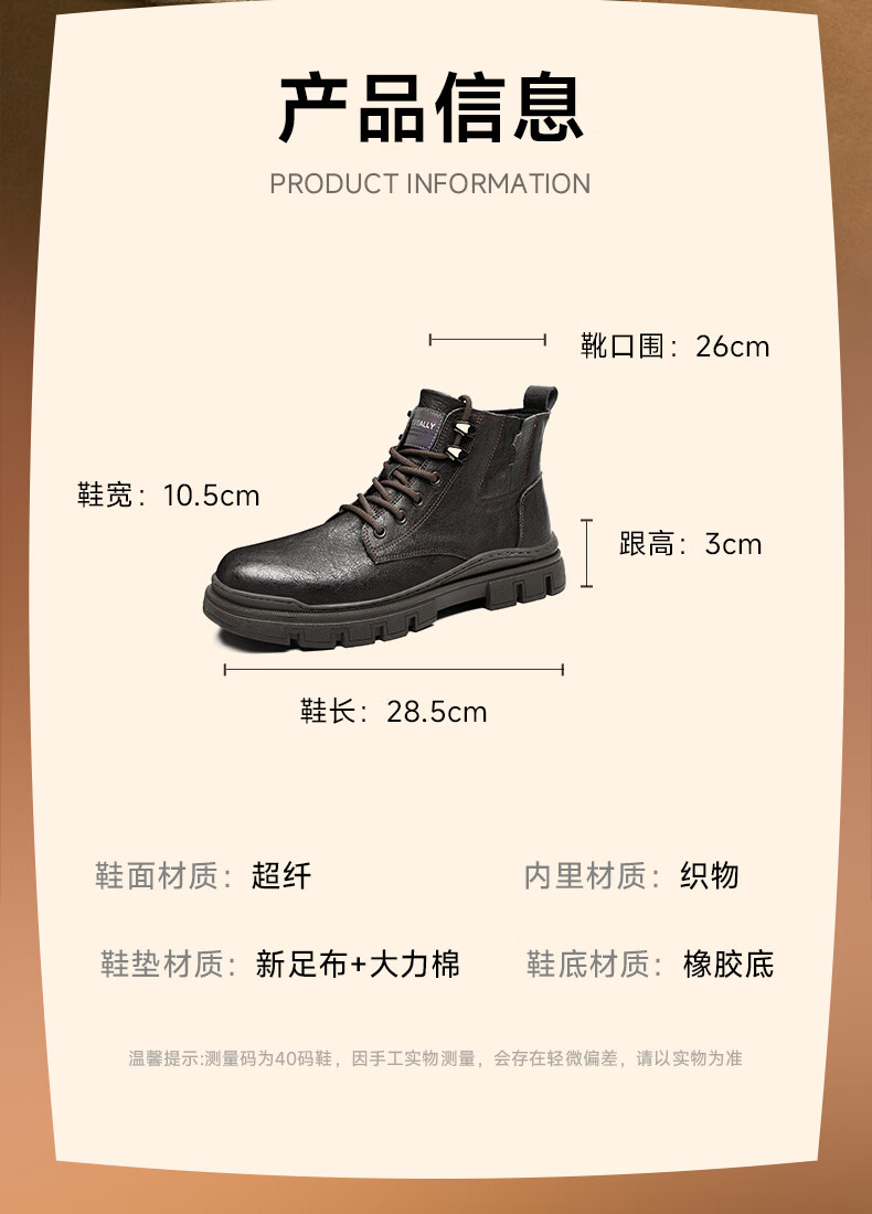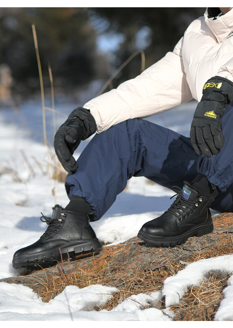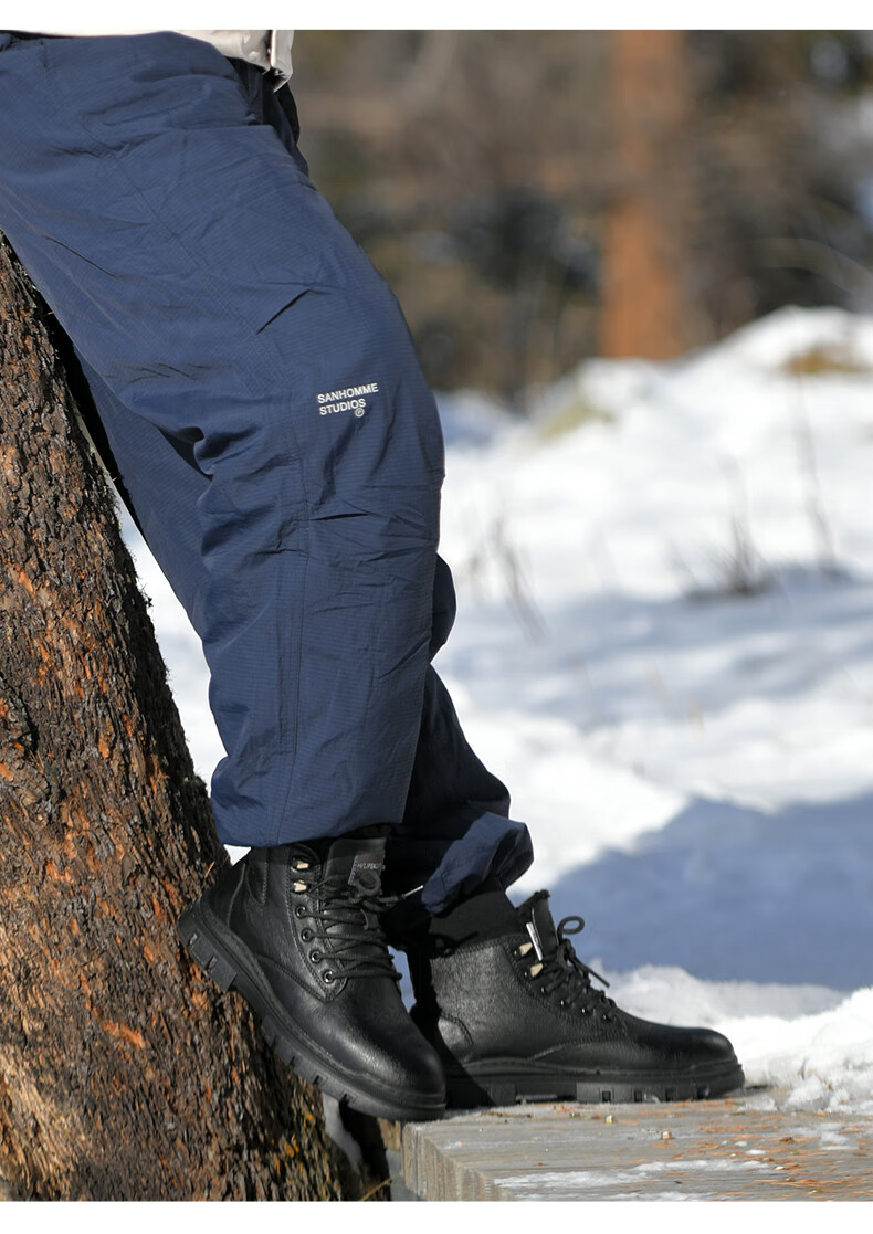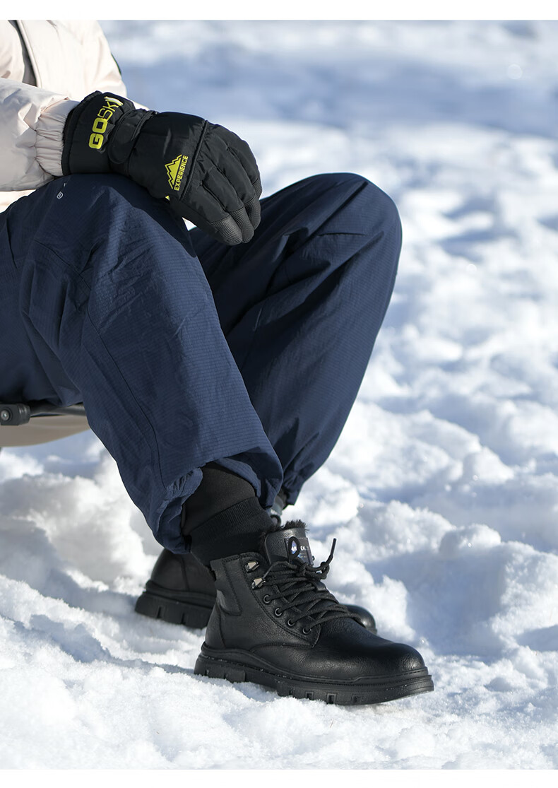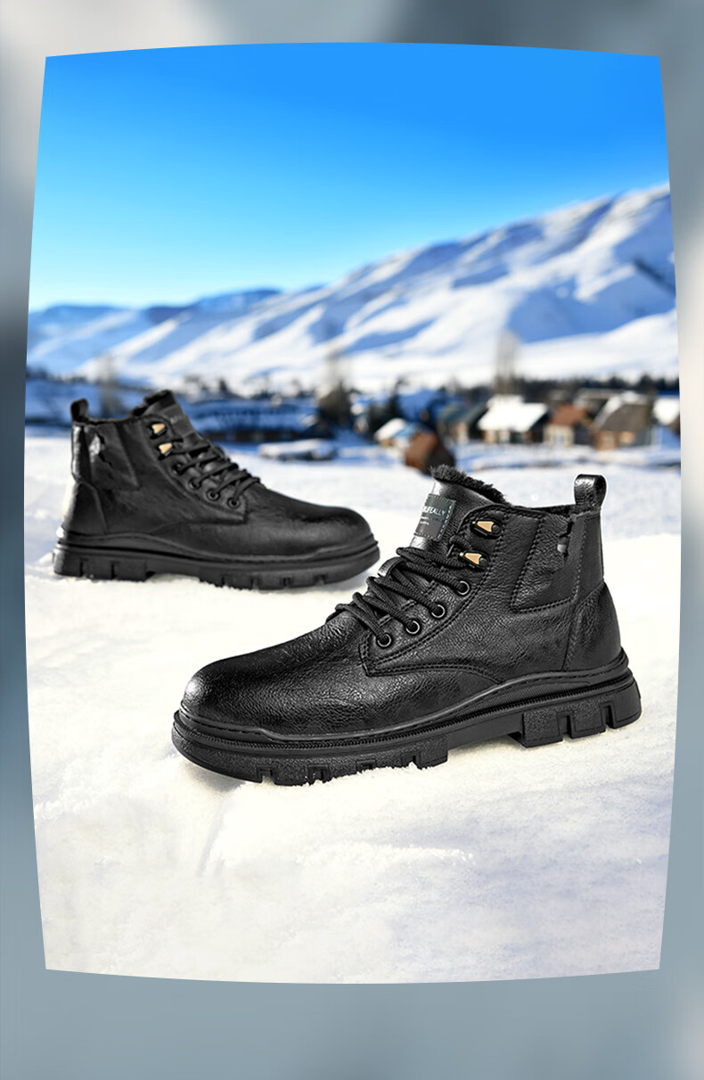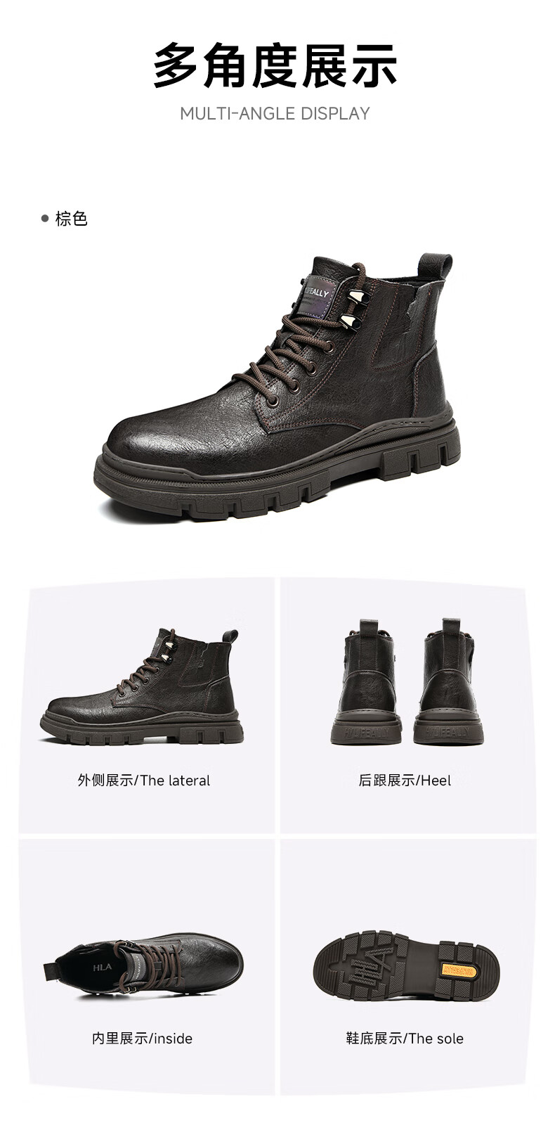 海澜之家HLA马丁靴男户外休闲英伦风百搭工装靴HAAGZM4AB70567 黑色加绒42