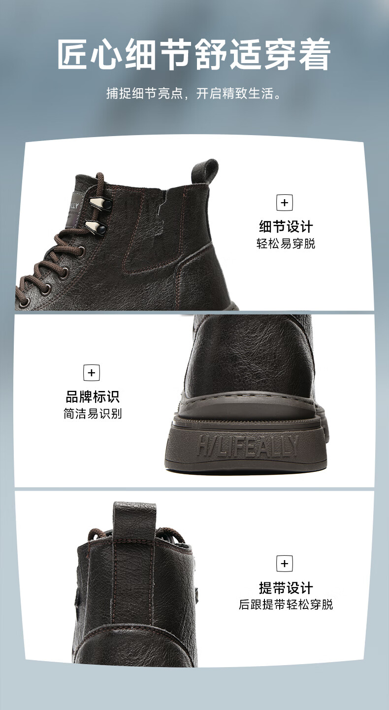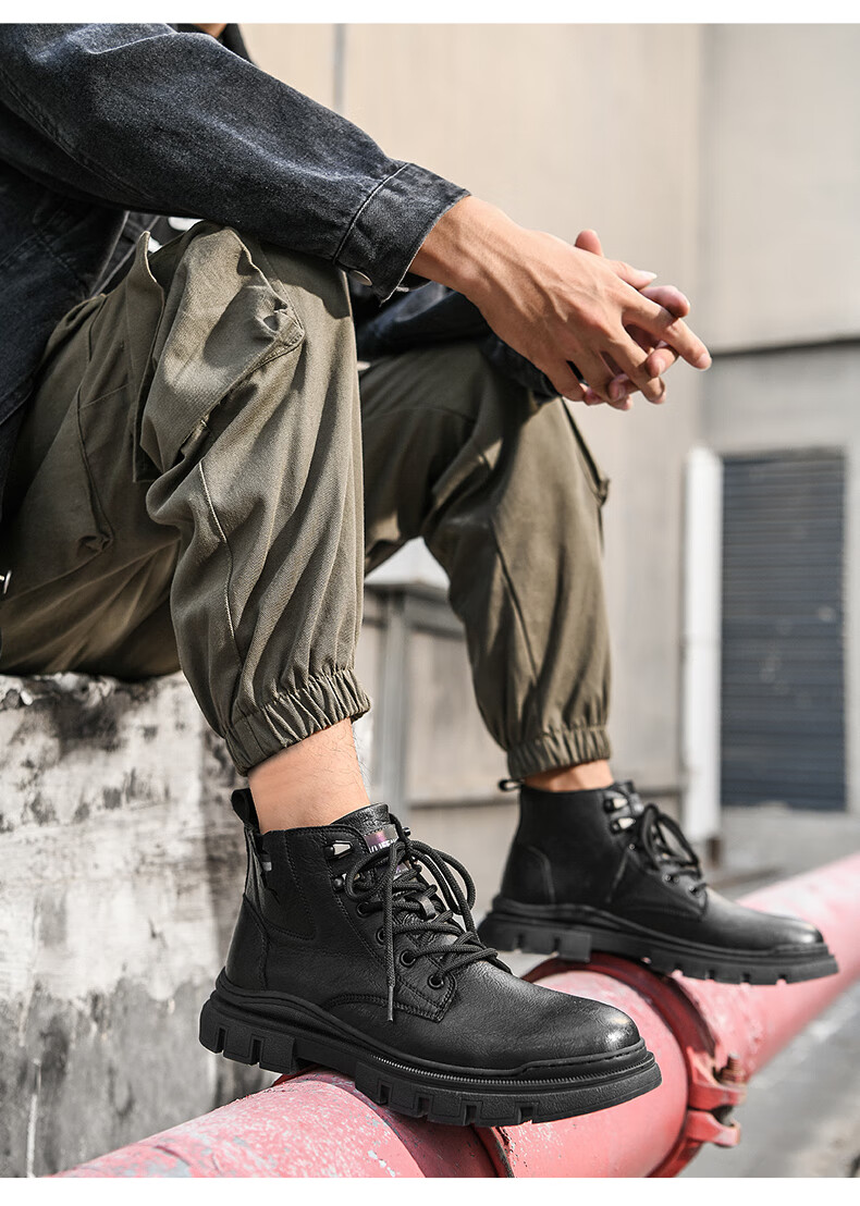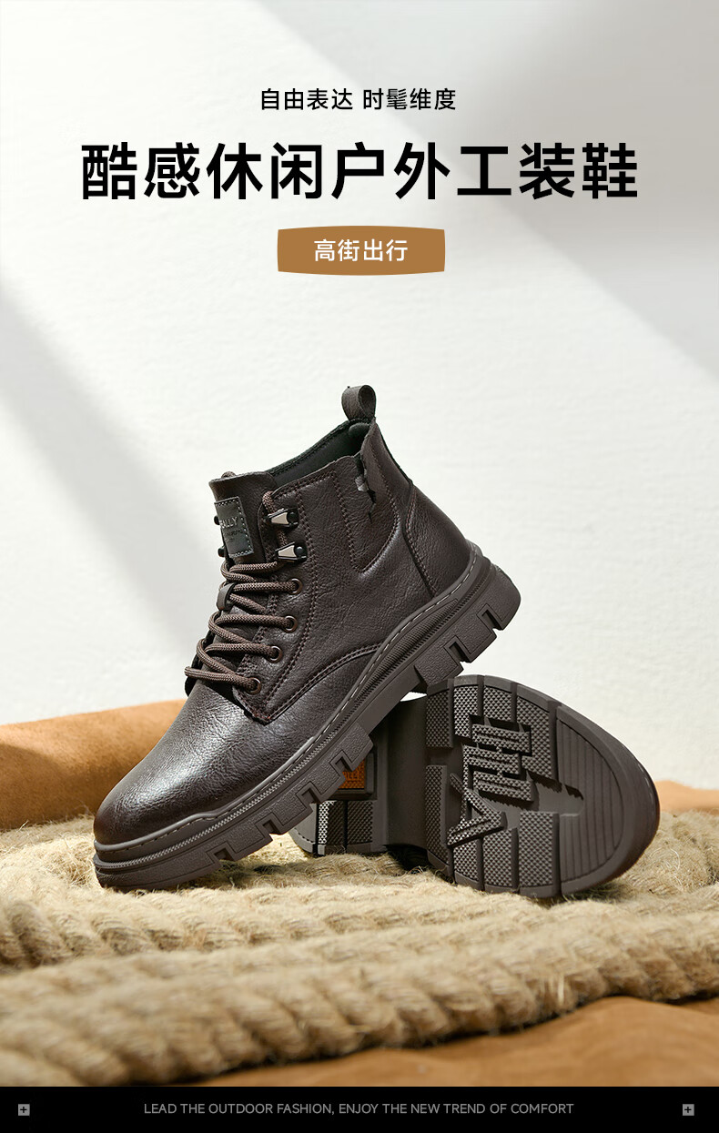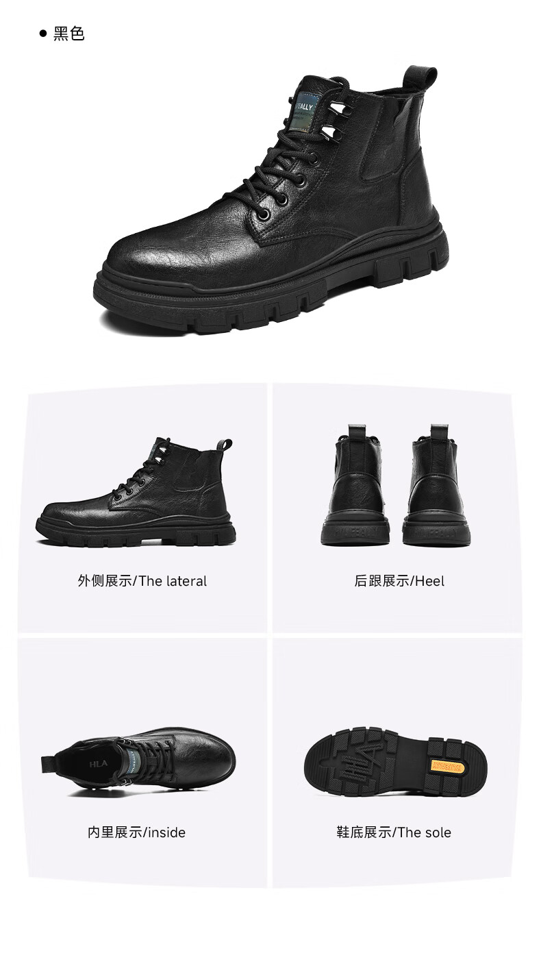 海澜之家HLA马丁靴男士户外休闲鞋英伦风百搭工装靴HAAGZM3AB70373 黑色44