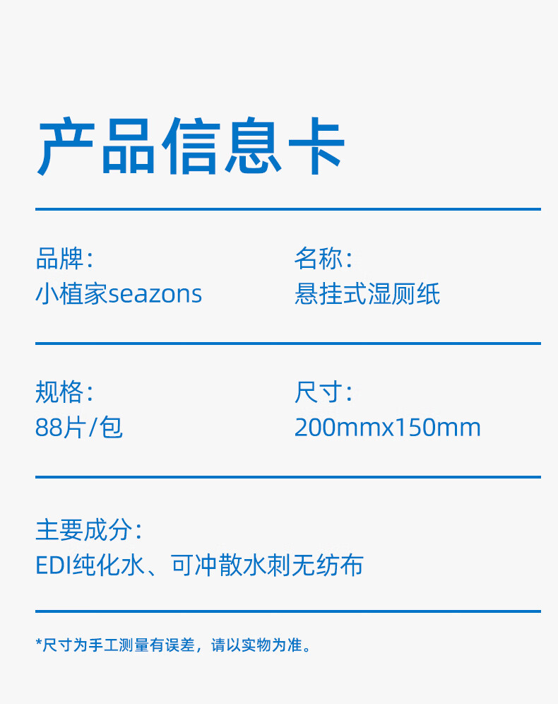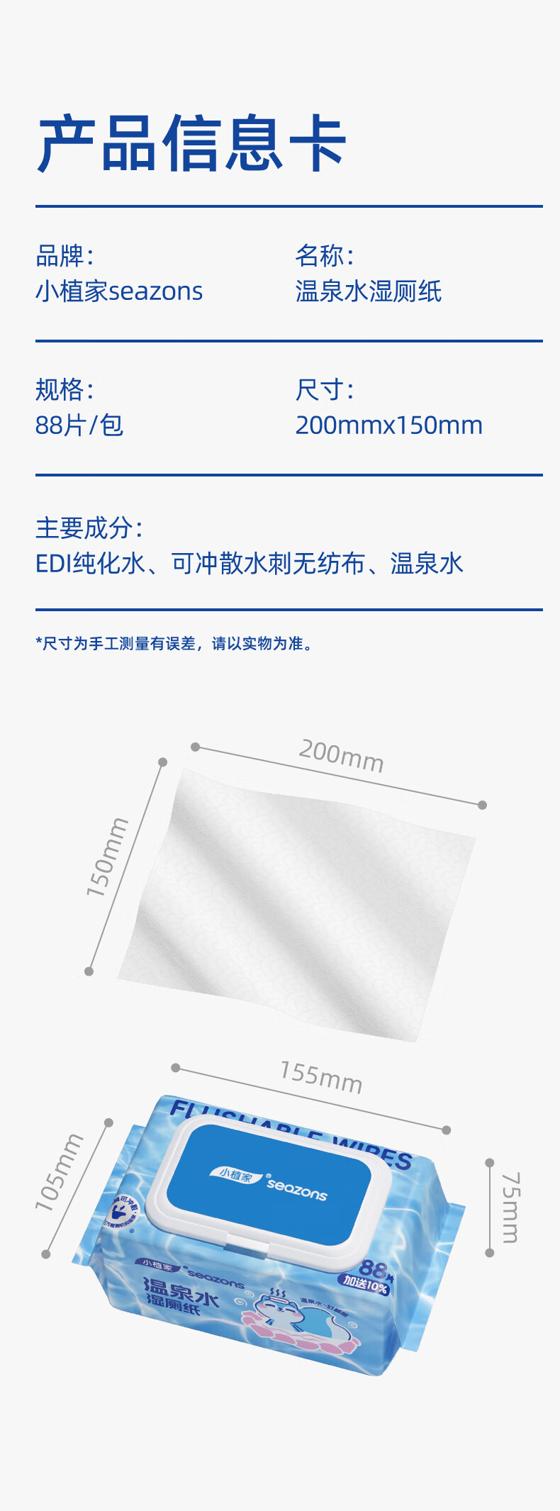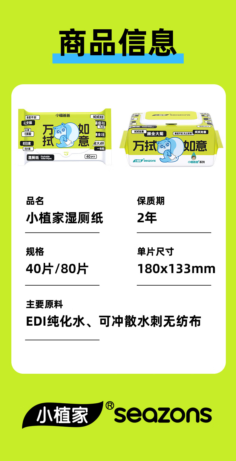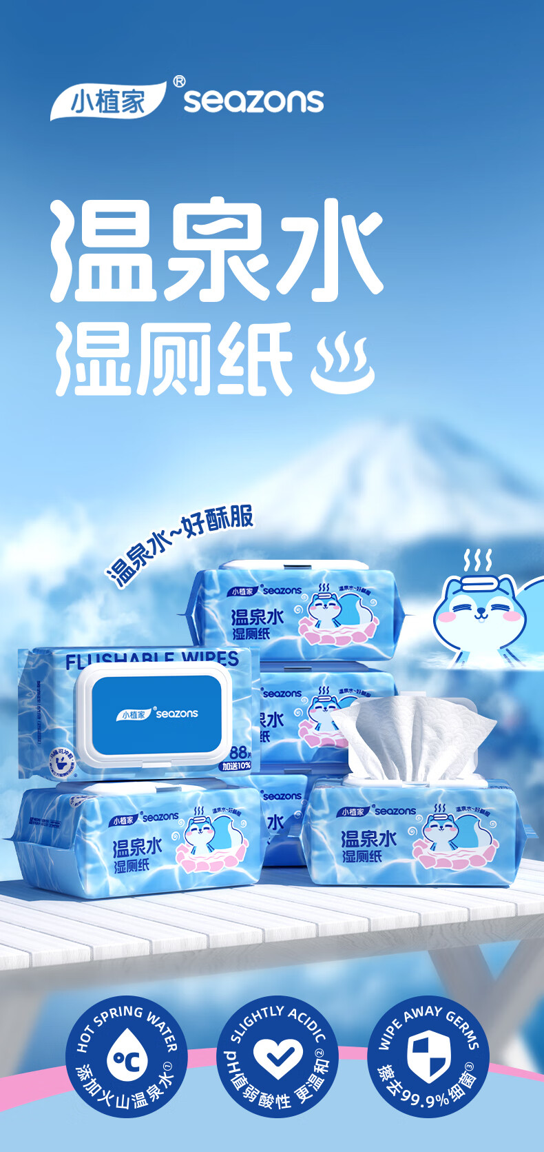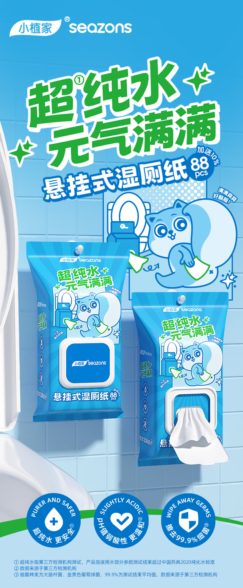 小植家湿厕纸纯水配方如厕湿巾成人儿童清洁湿纸巾可搭配厕纸 【便携装】75克 10抽*6包