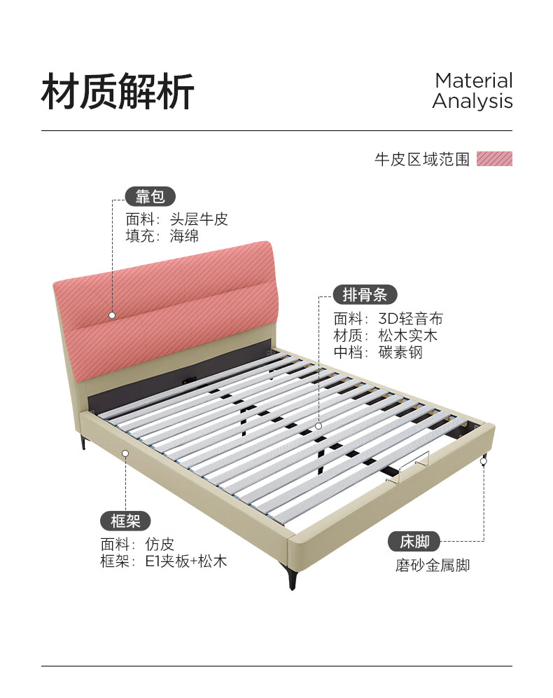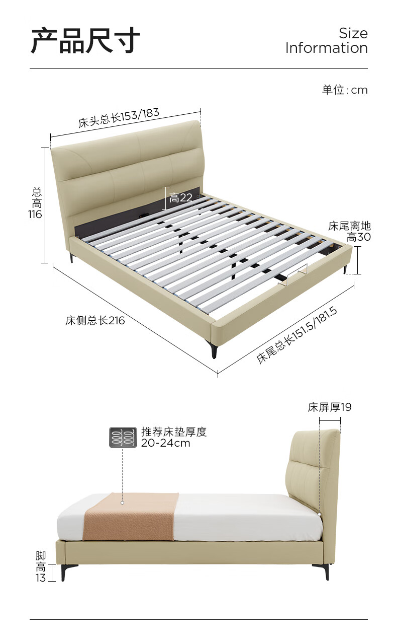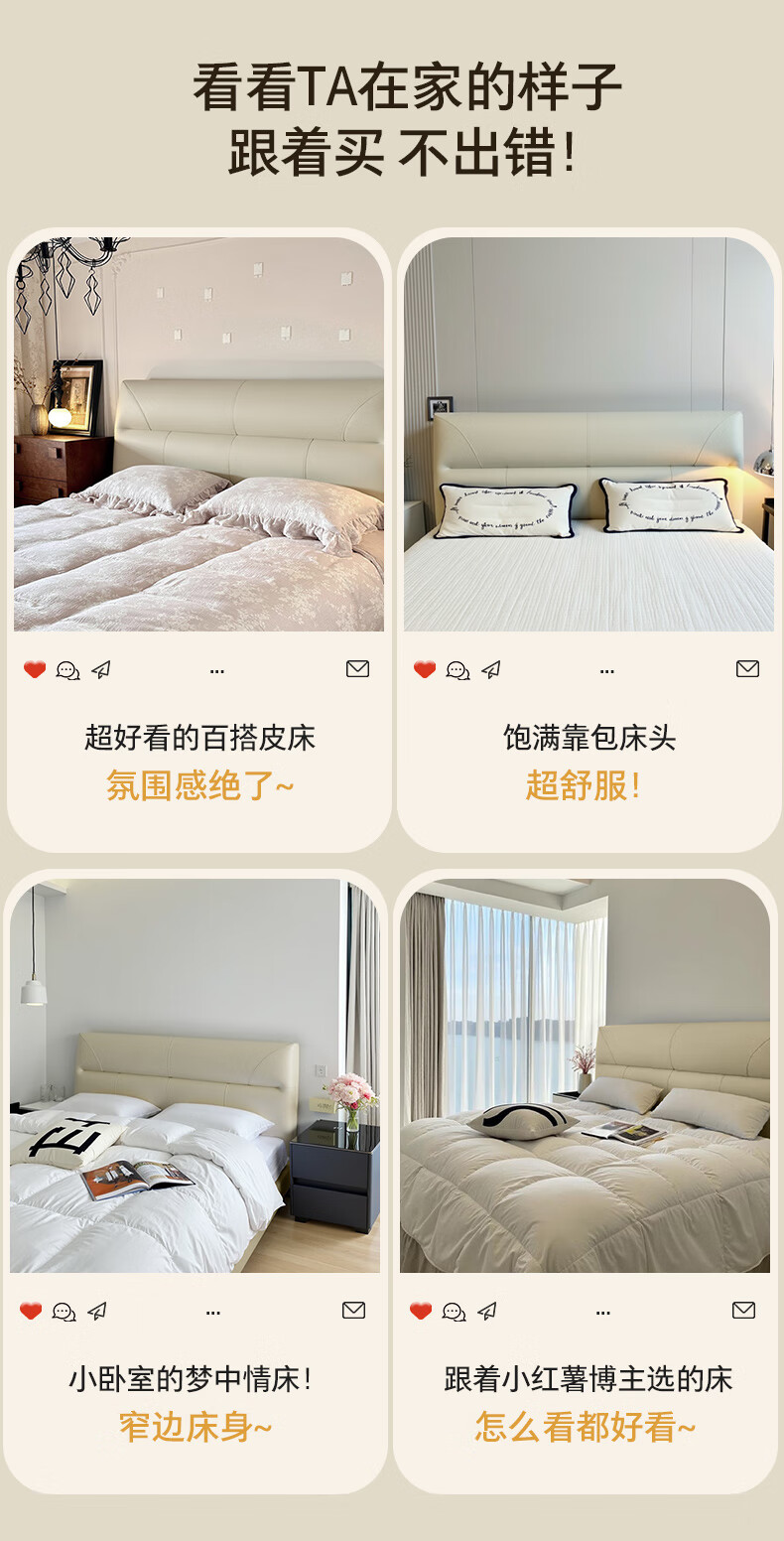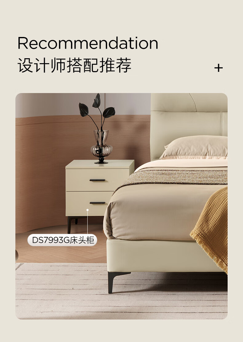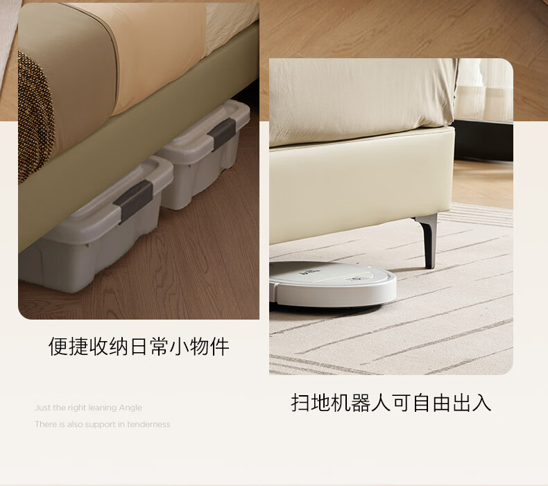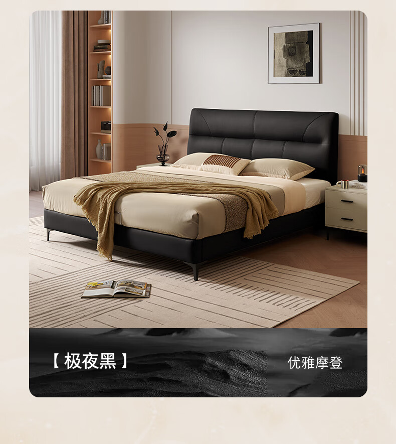 顾家家居(KUKA)京东家具头层牛皮床双人床DS8227B 月牙米高脚1.5+独袋弹簧乳胶垫