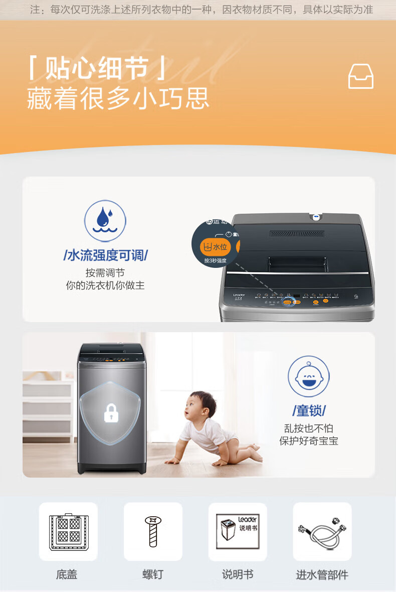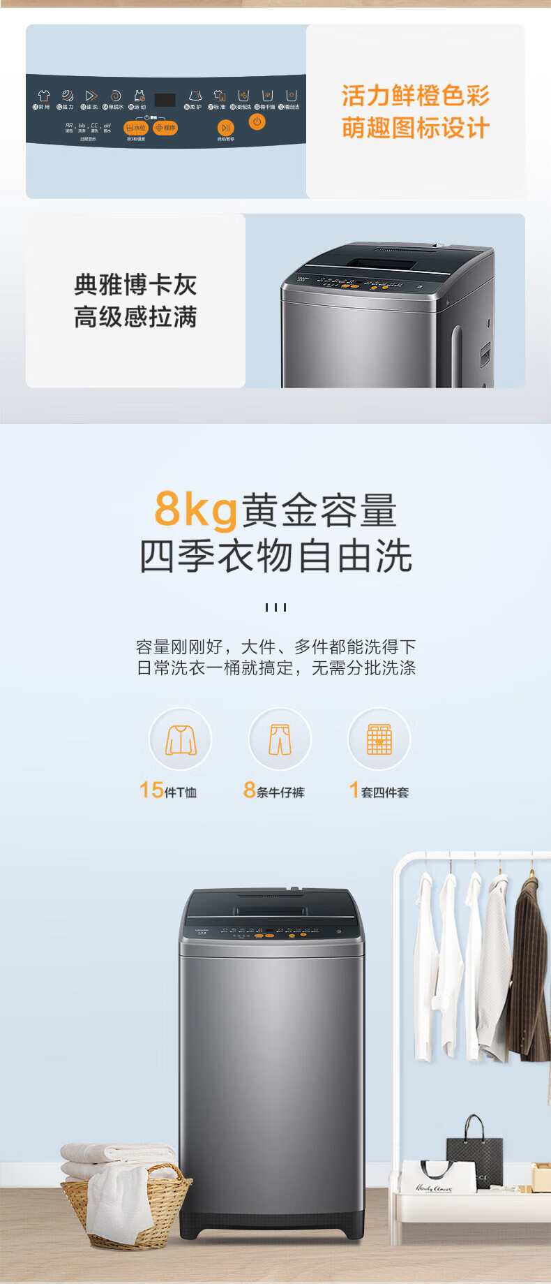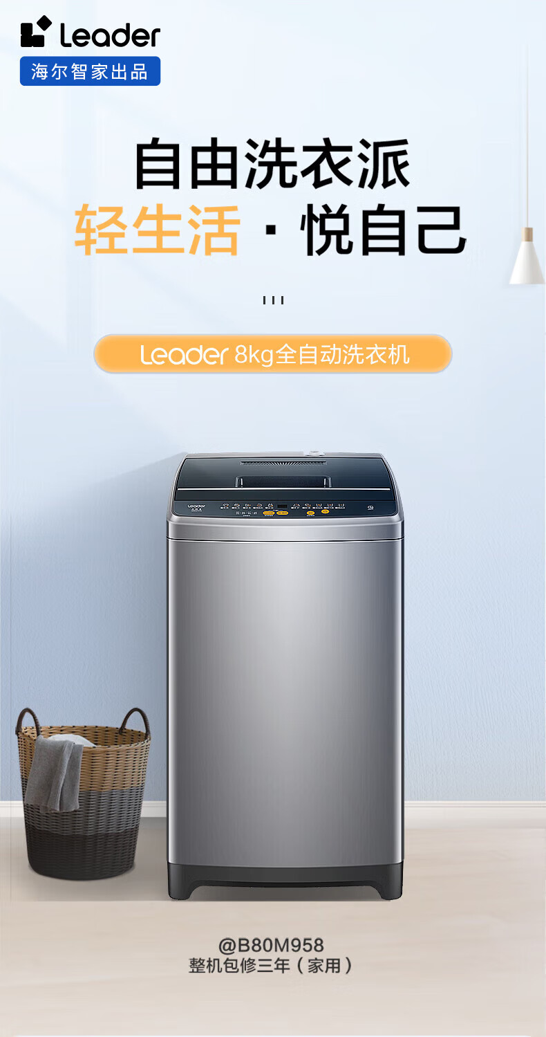 统帅(Leader)海尔智家出品 波轮洗衣机家用小型全自动 8公斤超净洗大容量 水电双宽租房宿舍 国家补贴 @B80M958