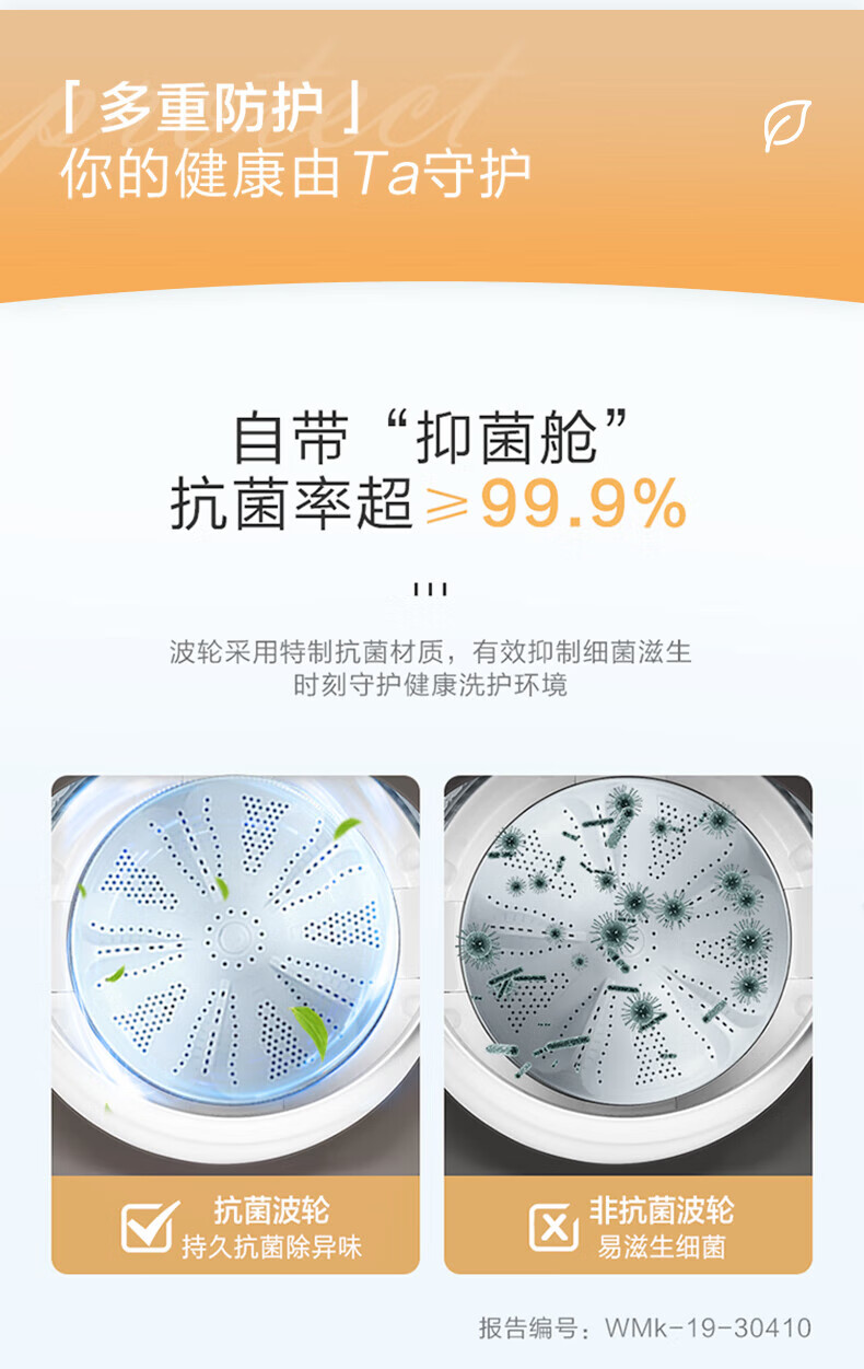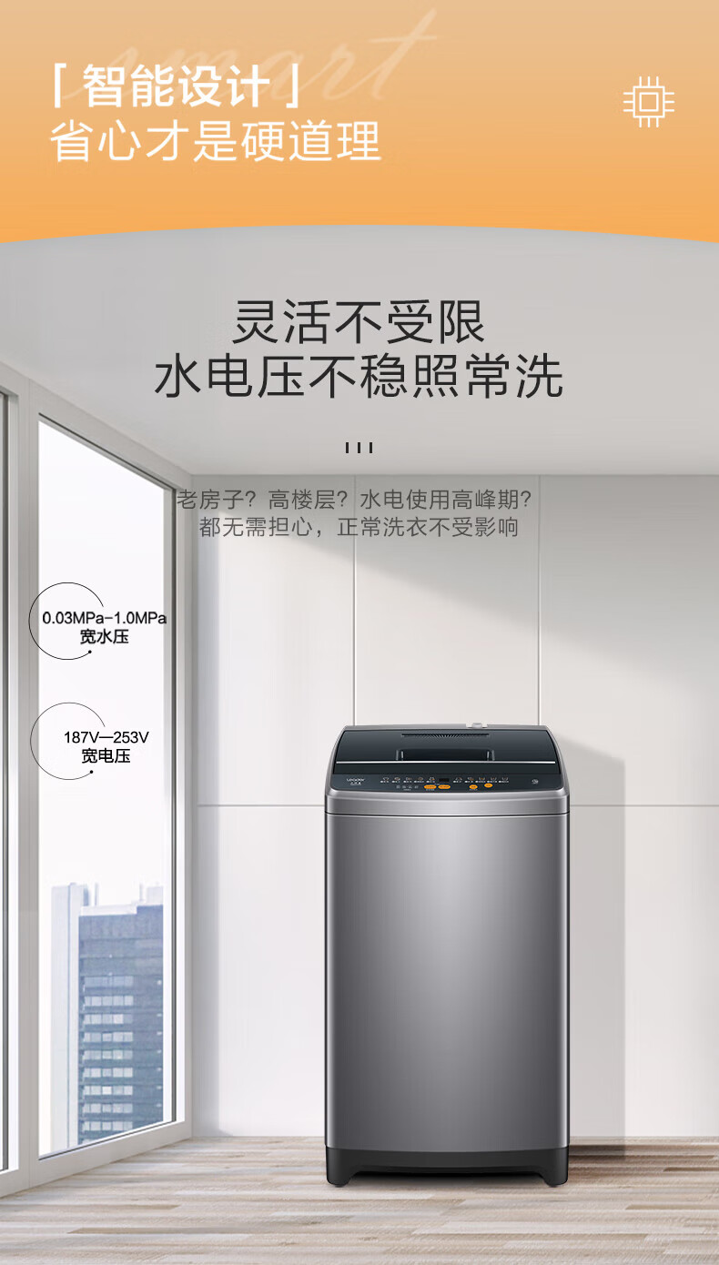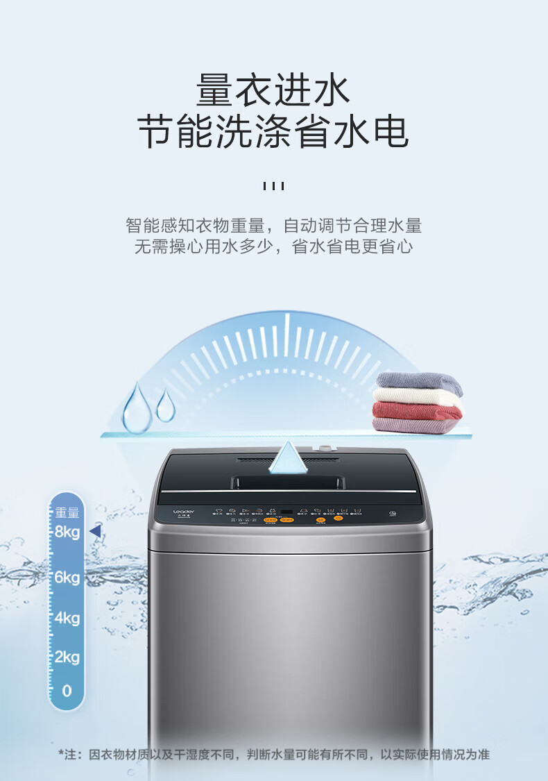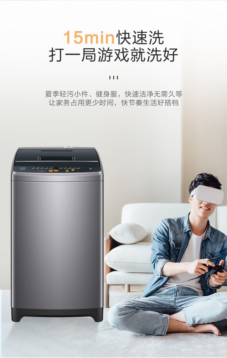 统帅(Leader)海尔智家出品 波轮洗衣机家用小型全自动 8公斤超净洗大容量 水电双宽租房宿舍 国家补贴 @B80M958