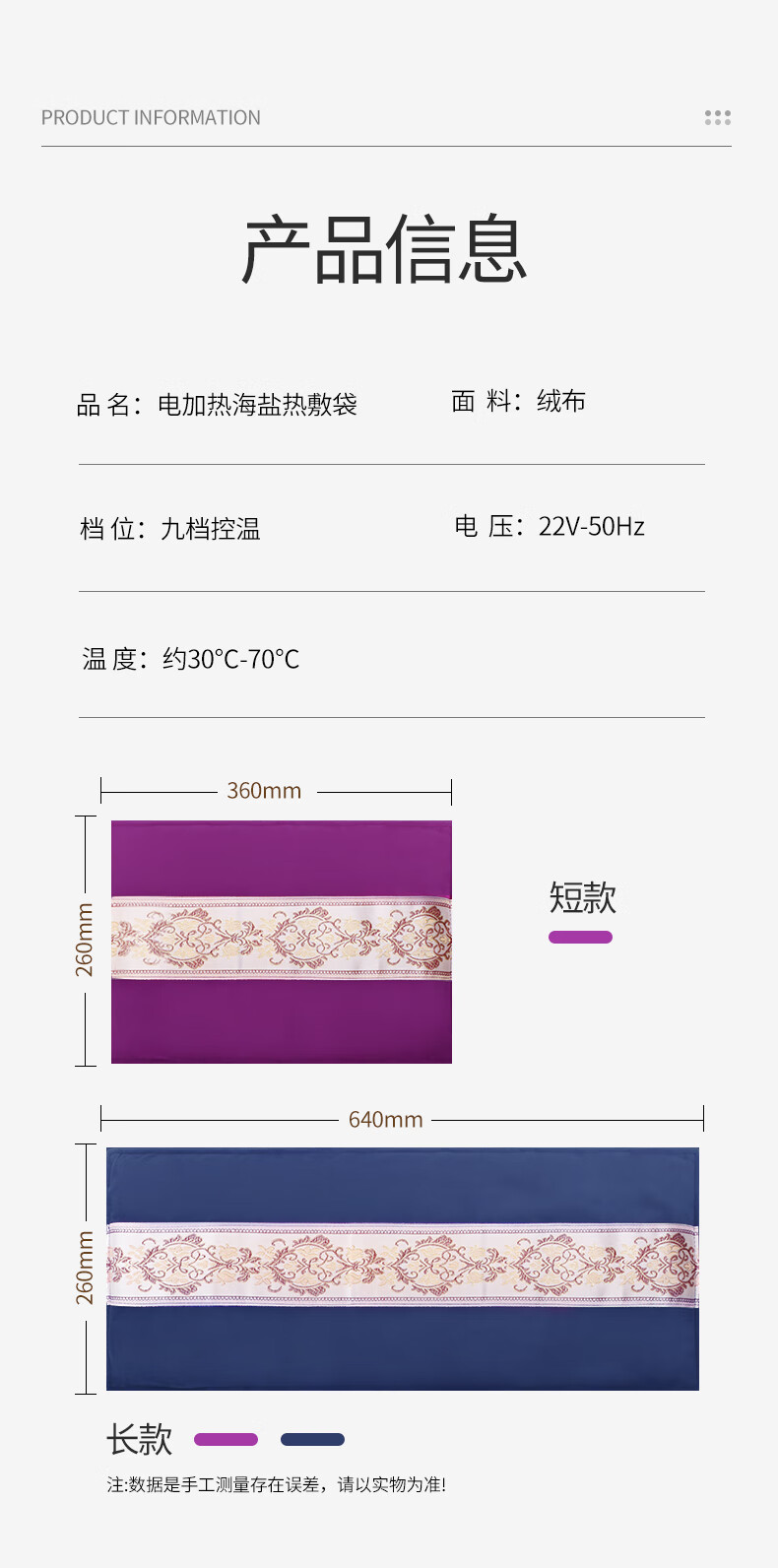 茗振【3C认证】茗振海盐热敷包电热盐包粗盐热敷包电加热热敷包 加长加大【3挡控温】民族风紫色