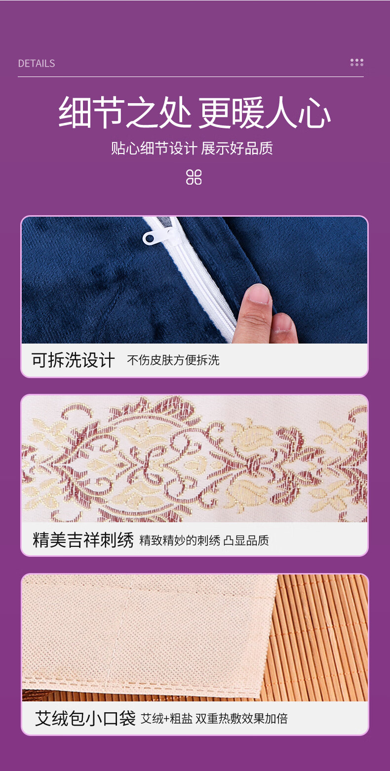 荆王御艾海盐热敷包电加热理疗盐袋粗盐热敷肩颈椎膝盖腰部艾灸养生热敷袋 刺绣款紫色短款海盐包【秋冬热敷】