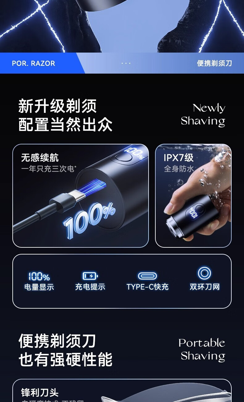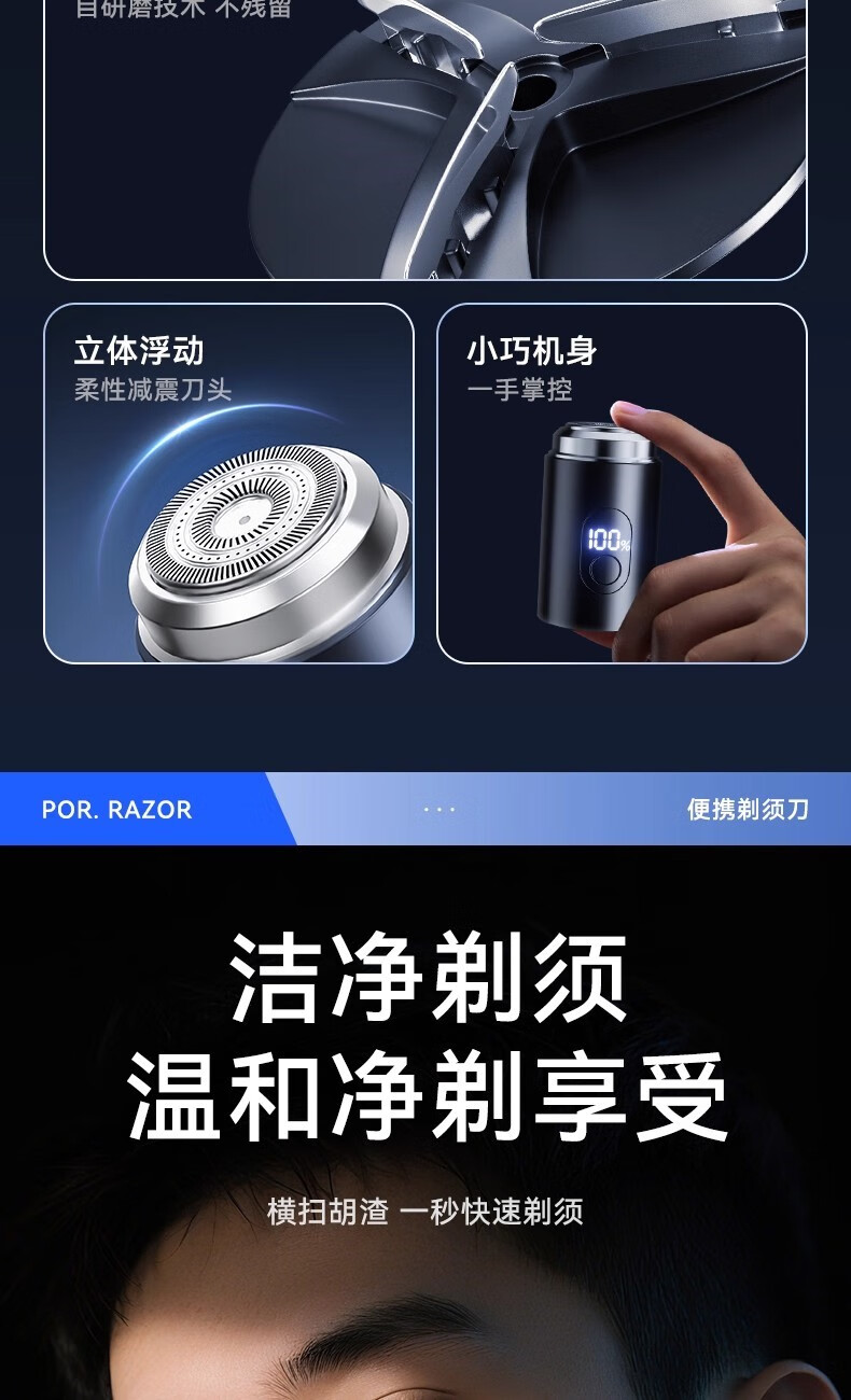 飞利浦(PHILIPS)同款剃须刀德国品质电动剃须刀男士2025新款刮胡刀剃胡子刀官方旗舰店正品便携小钢炮 数显至尊款进口九叶刀头