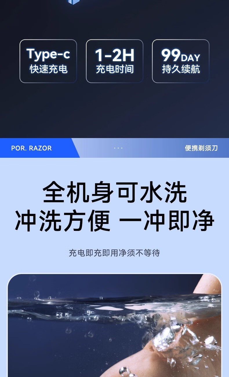 飞利浦(PHILIPS)同款剃须刀德国品质2025新款电动迷你剃须刀充电式全身水洗旅行车载便捷式男士刮胡刀 深空灰