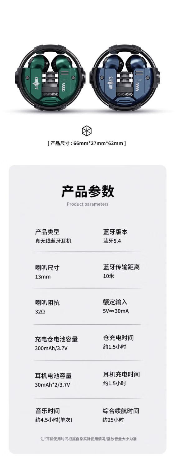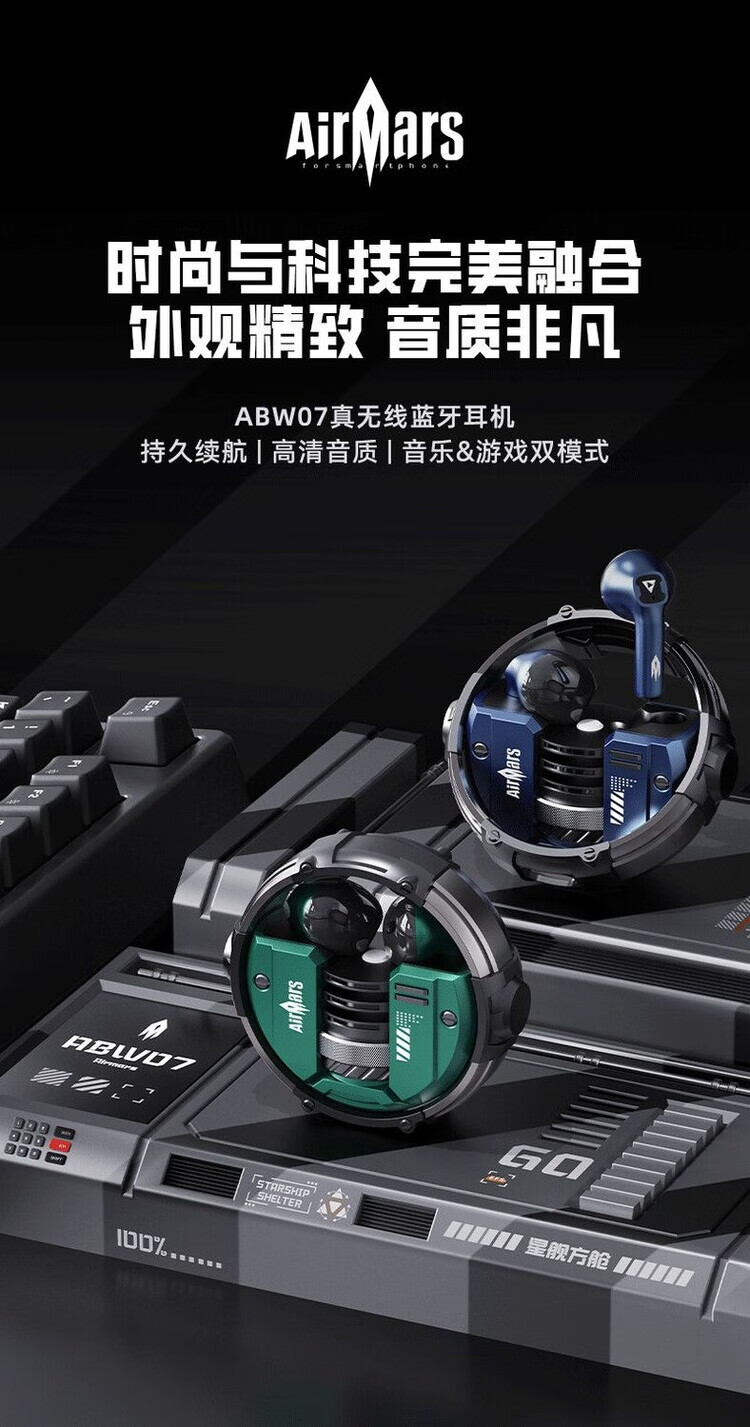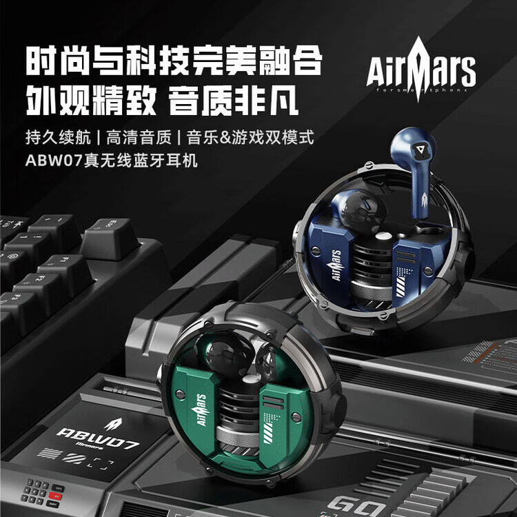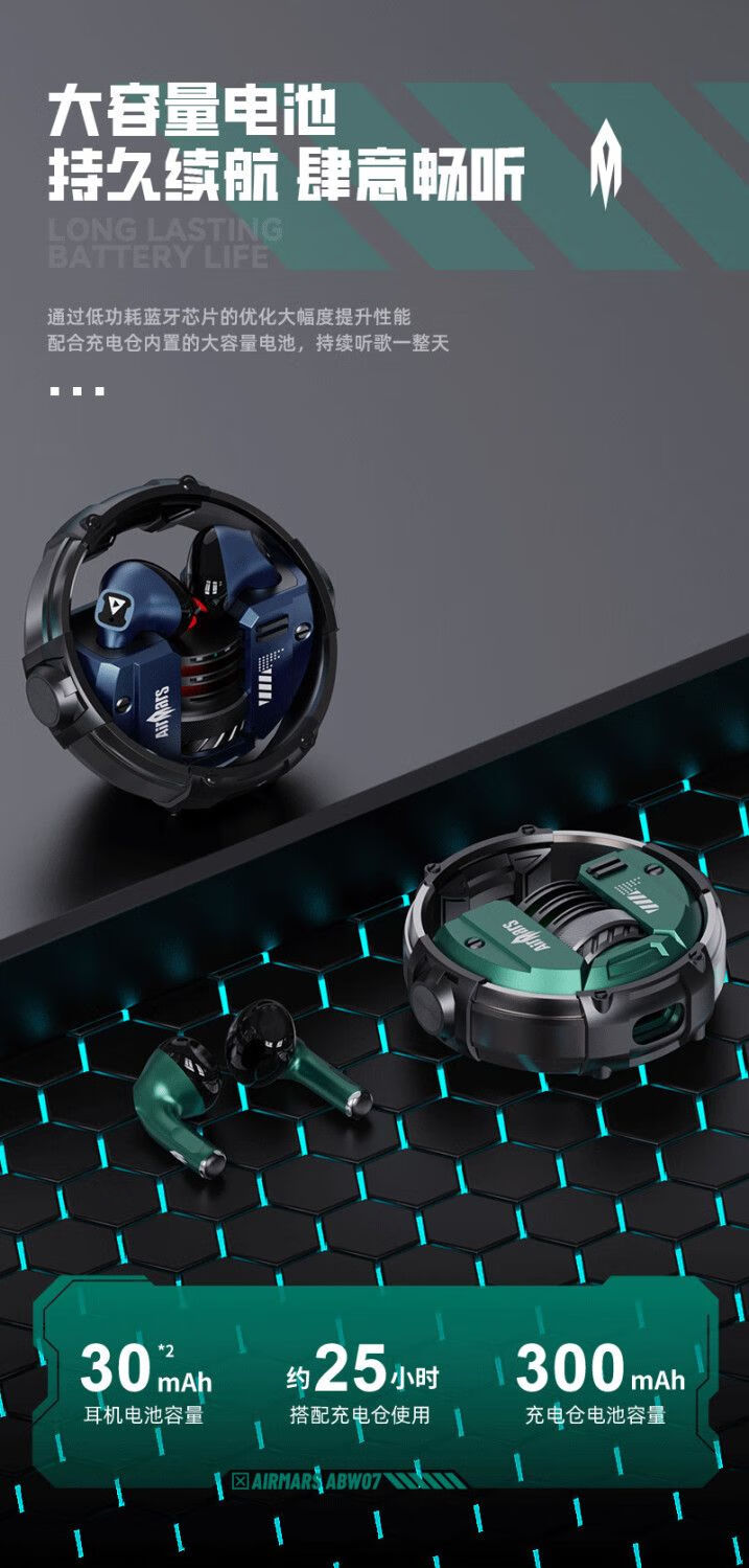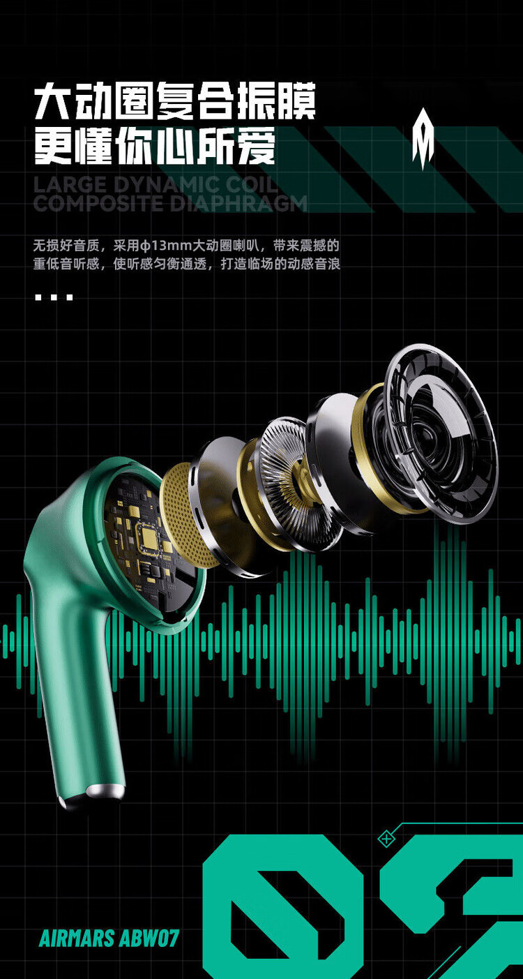 宙星悦高音质耳机蓝牙无线入耳式超长续航运动游戏电竞降噪适用苹果华为 绿色