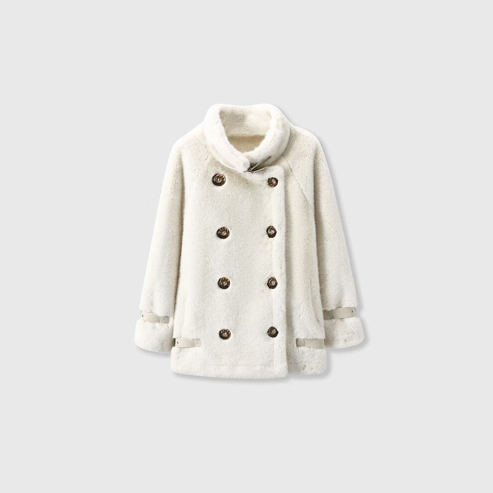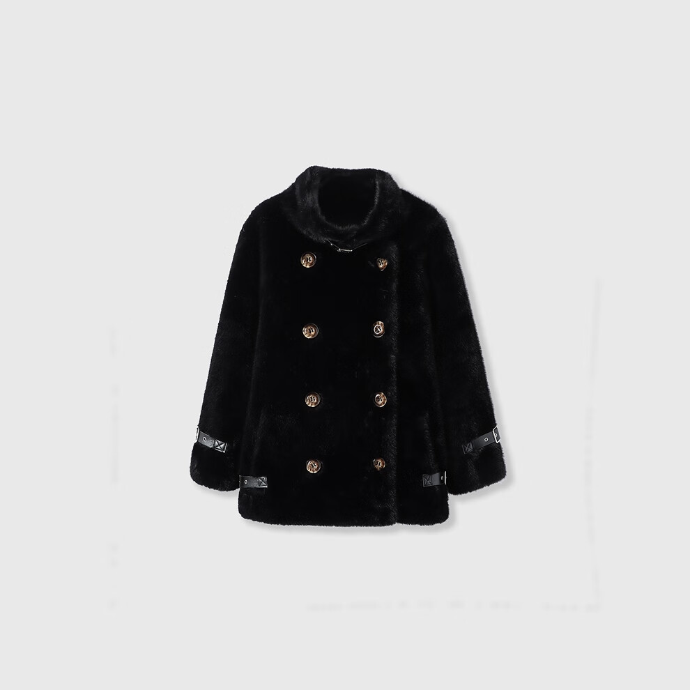 Basic House/百家好圣诞深冬韩版仿水貂绒加厚外套女毛领毛茸茸 黑色 M 85-125斤