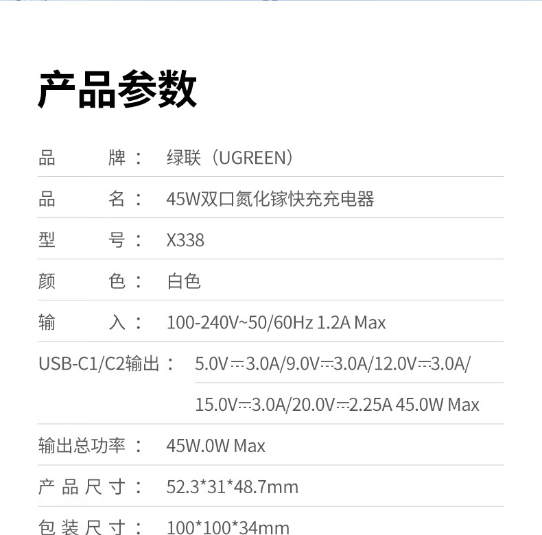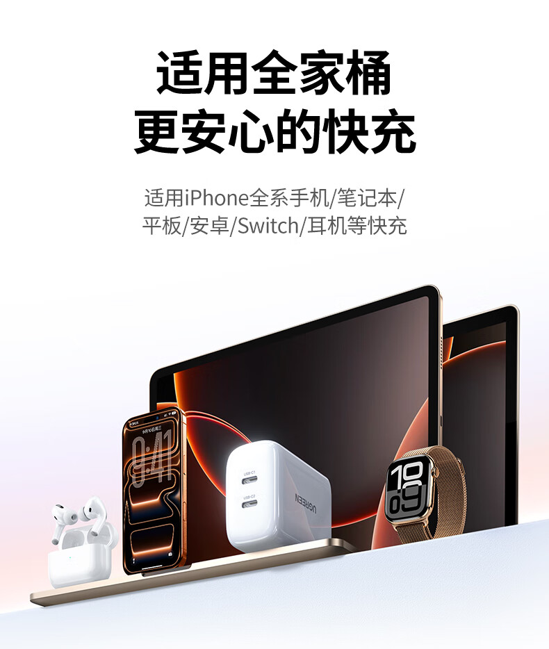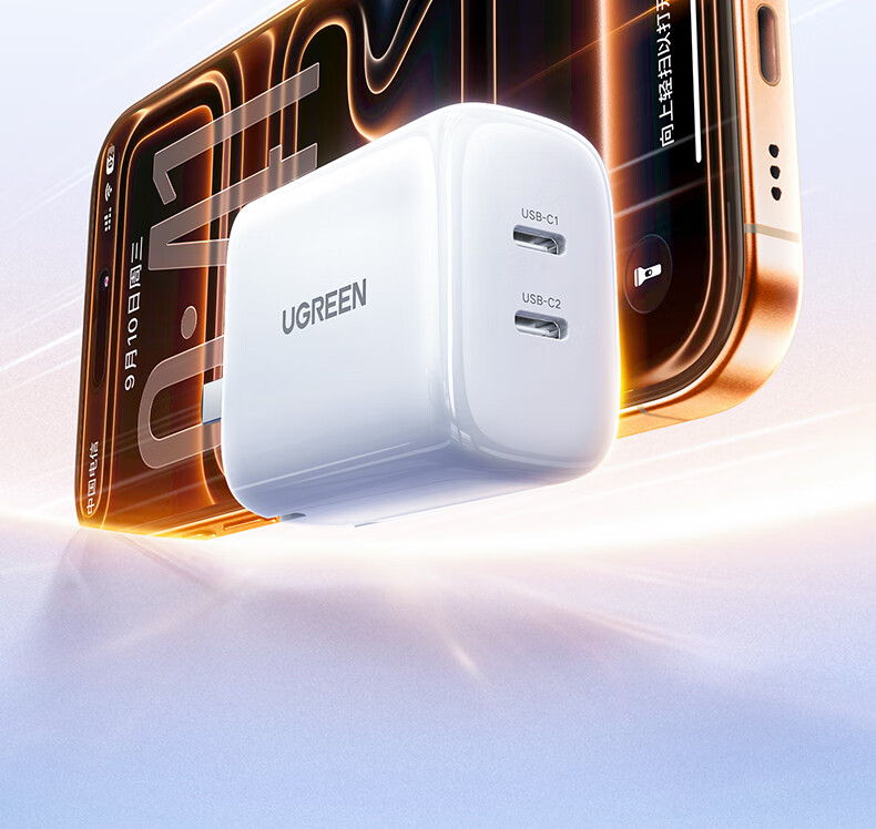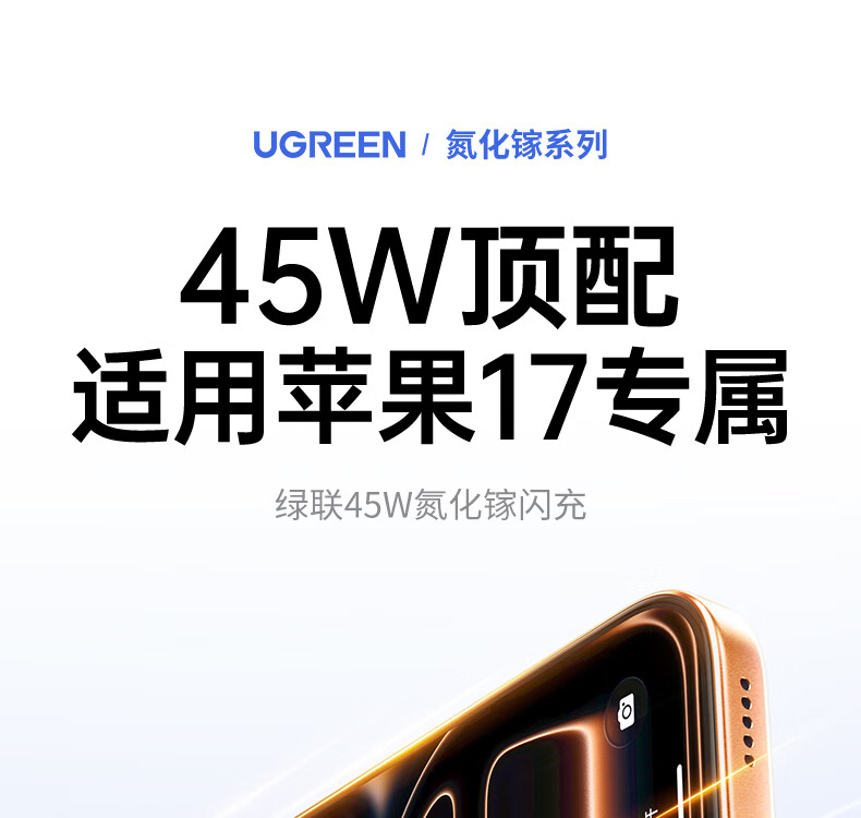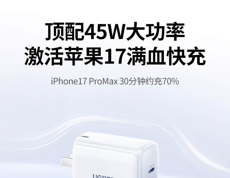绿联【苹果17专属】45W充电器适用PD40W苹果iPhone17/16ProMax/Air华为三星手机氮化镓Type-C多口快充