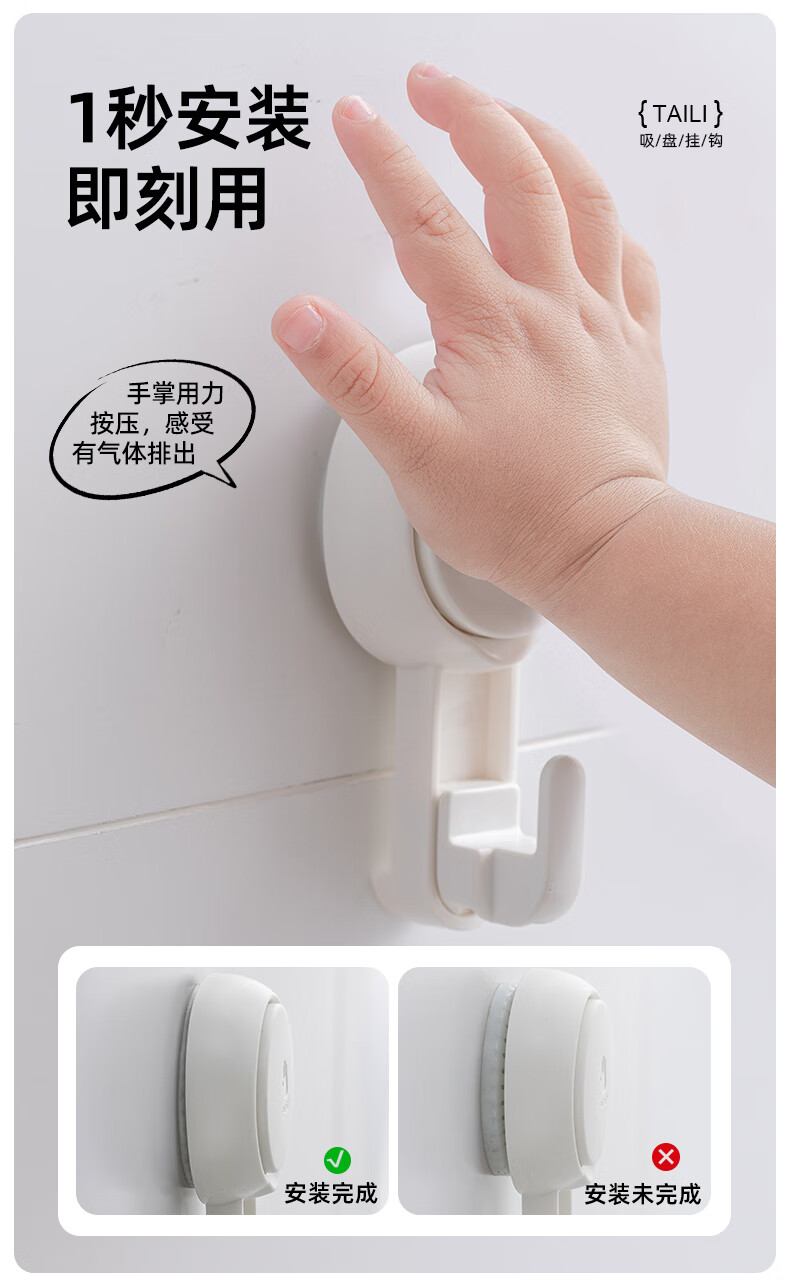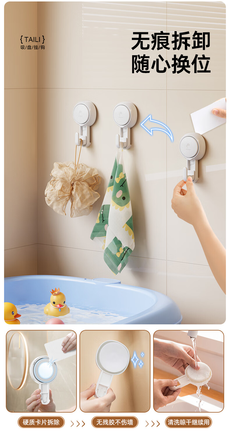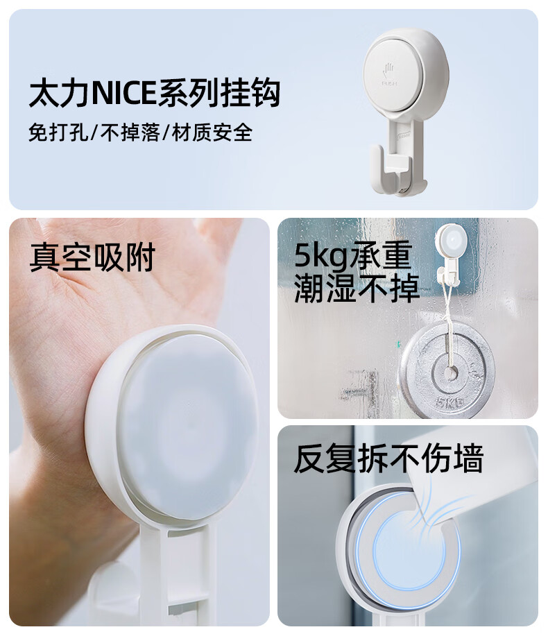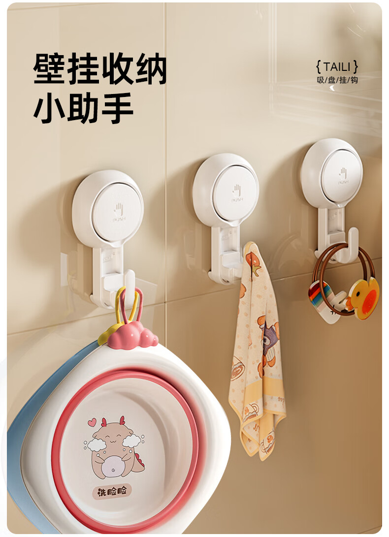 太力吸盘挂钩厨房免打孔强力无痕门后挂毛巾架卫生间上墙置物架挂钩
