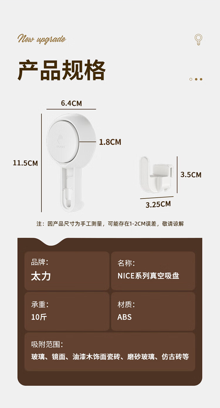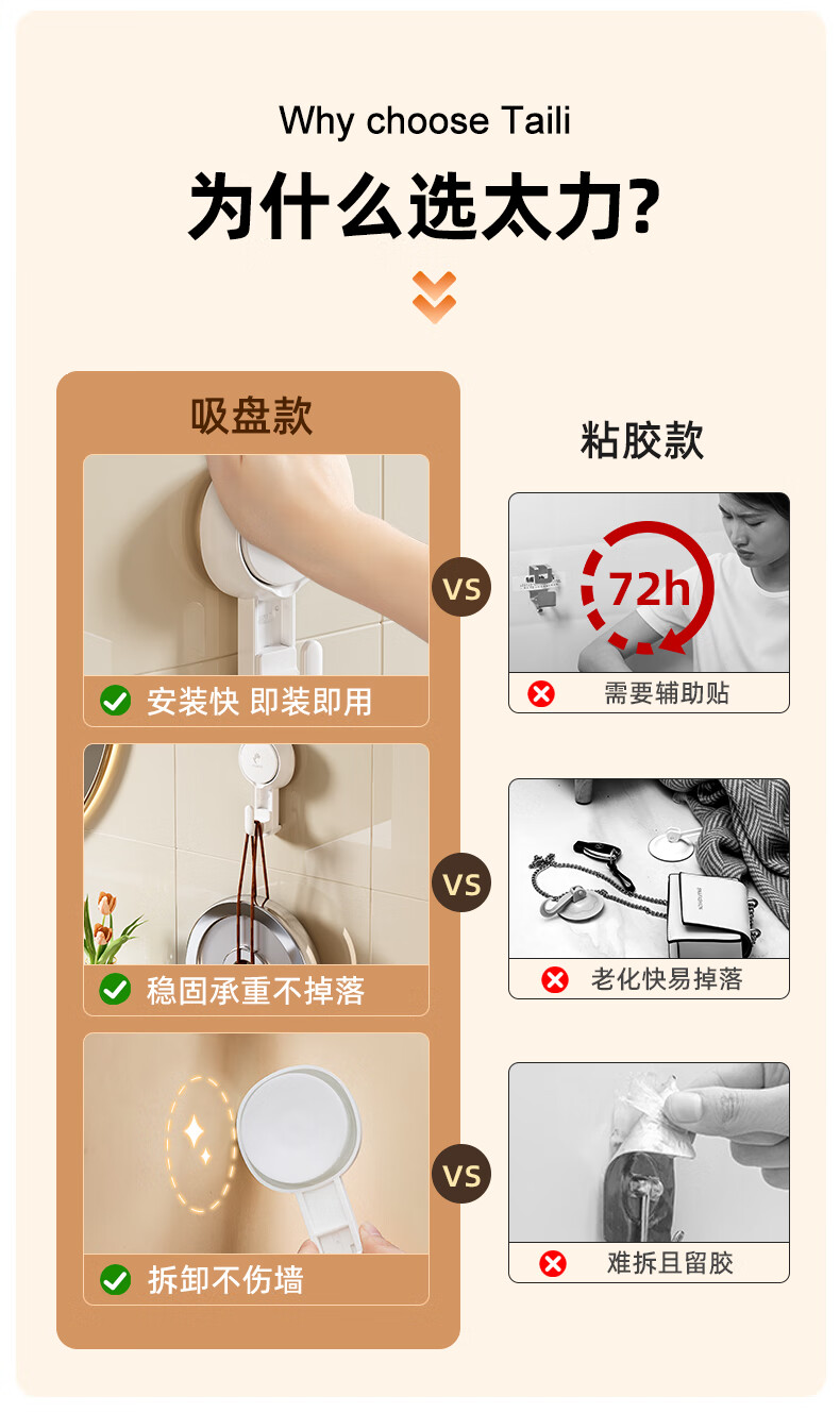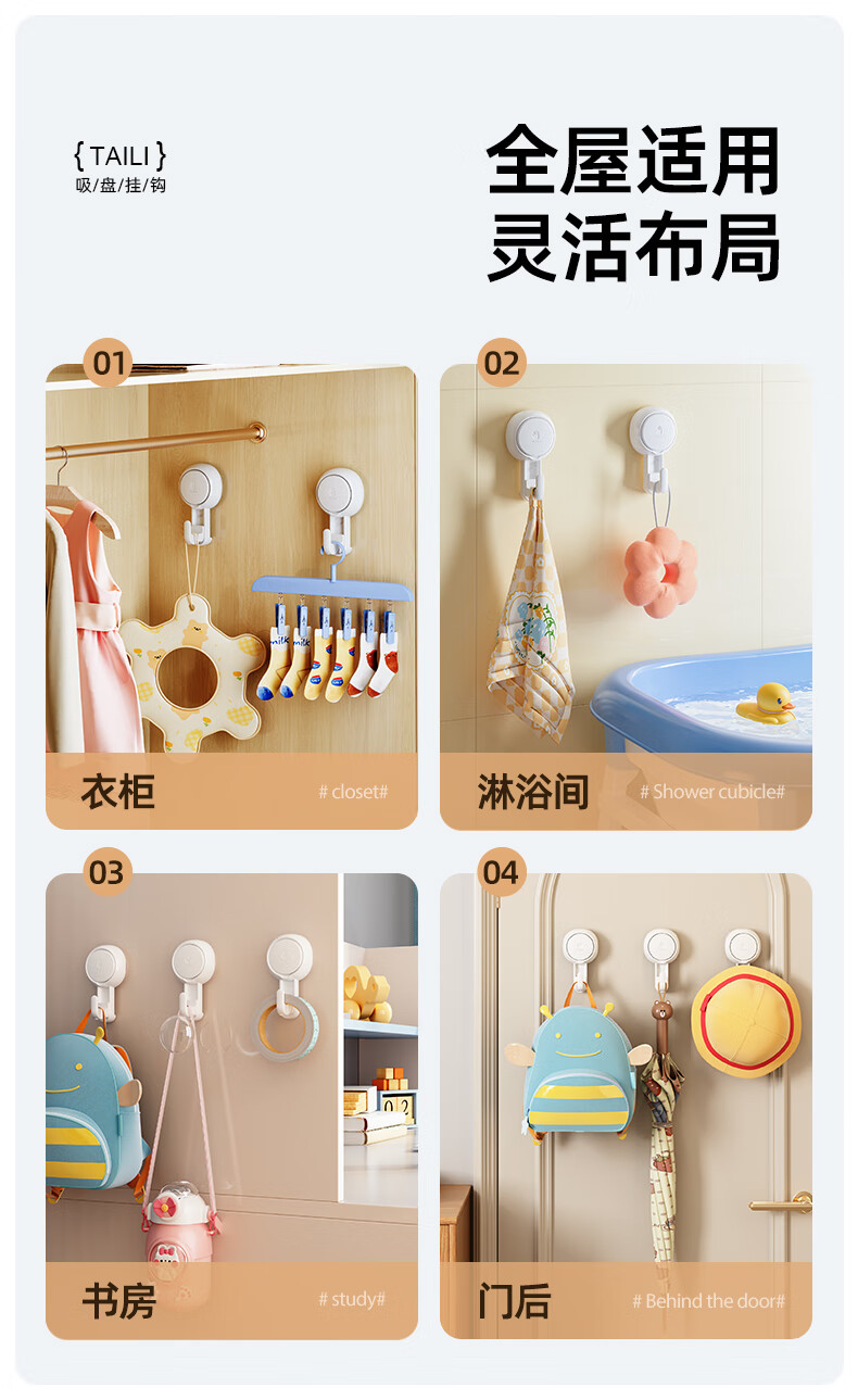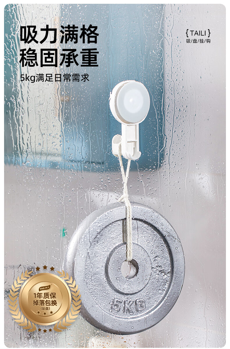 太力吸盘挂钩厨房免打孔强力无痕门后挂毛巾架卫生间上墙置物架挂钩