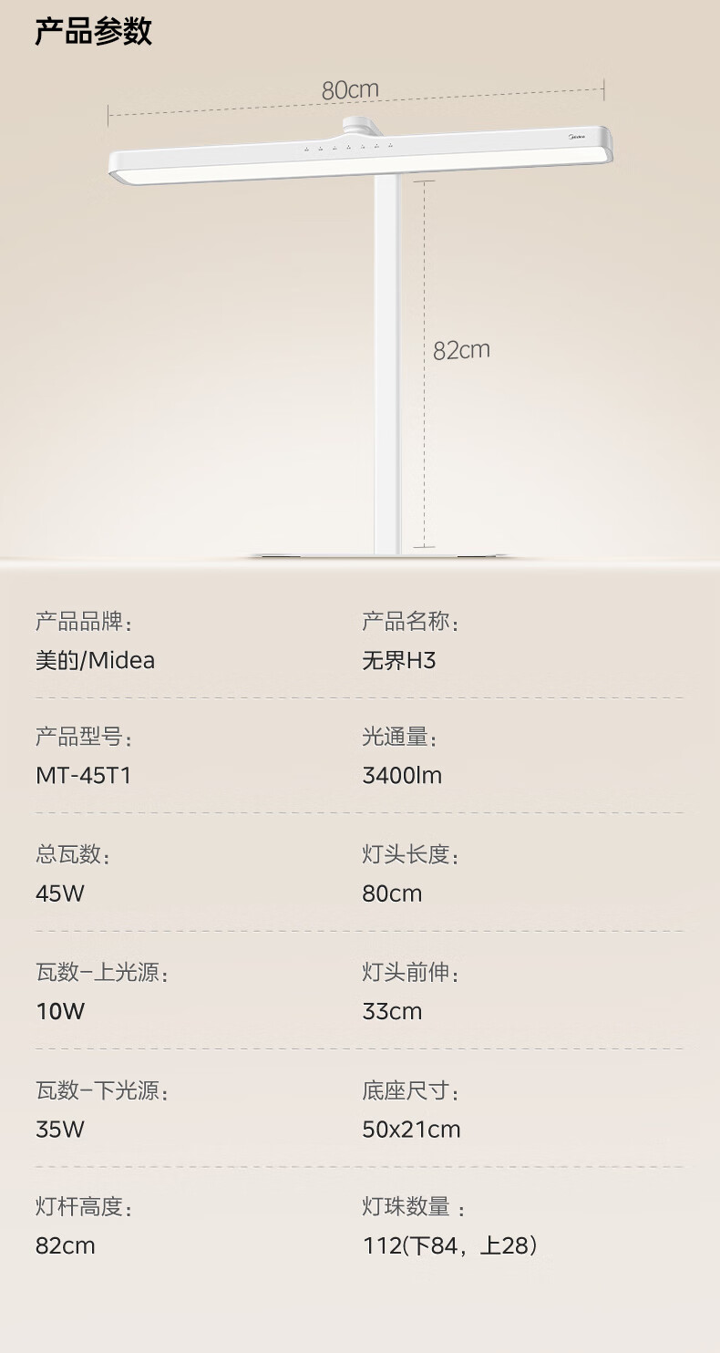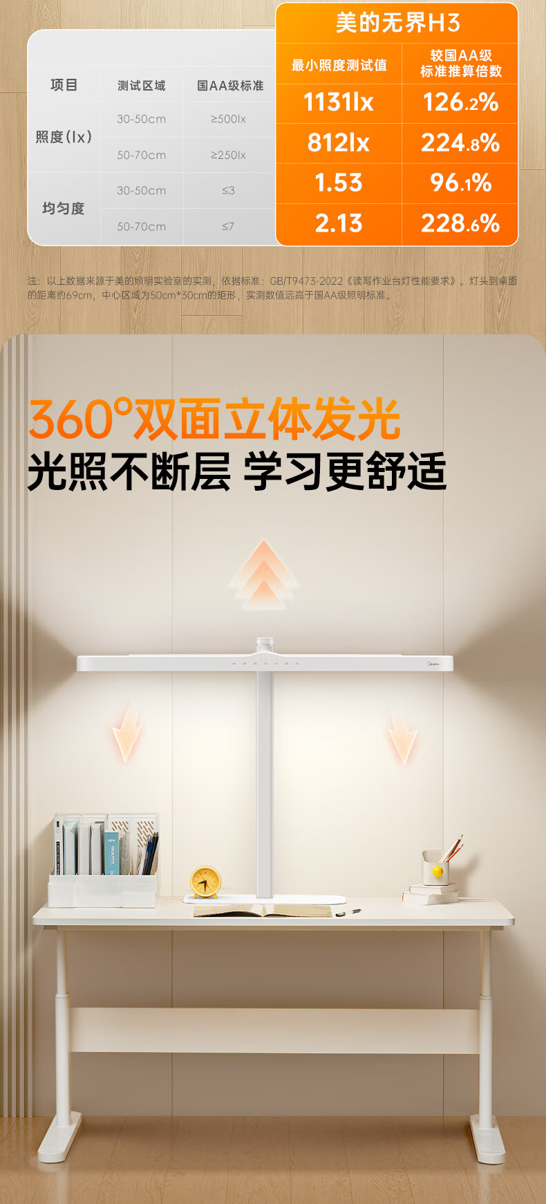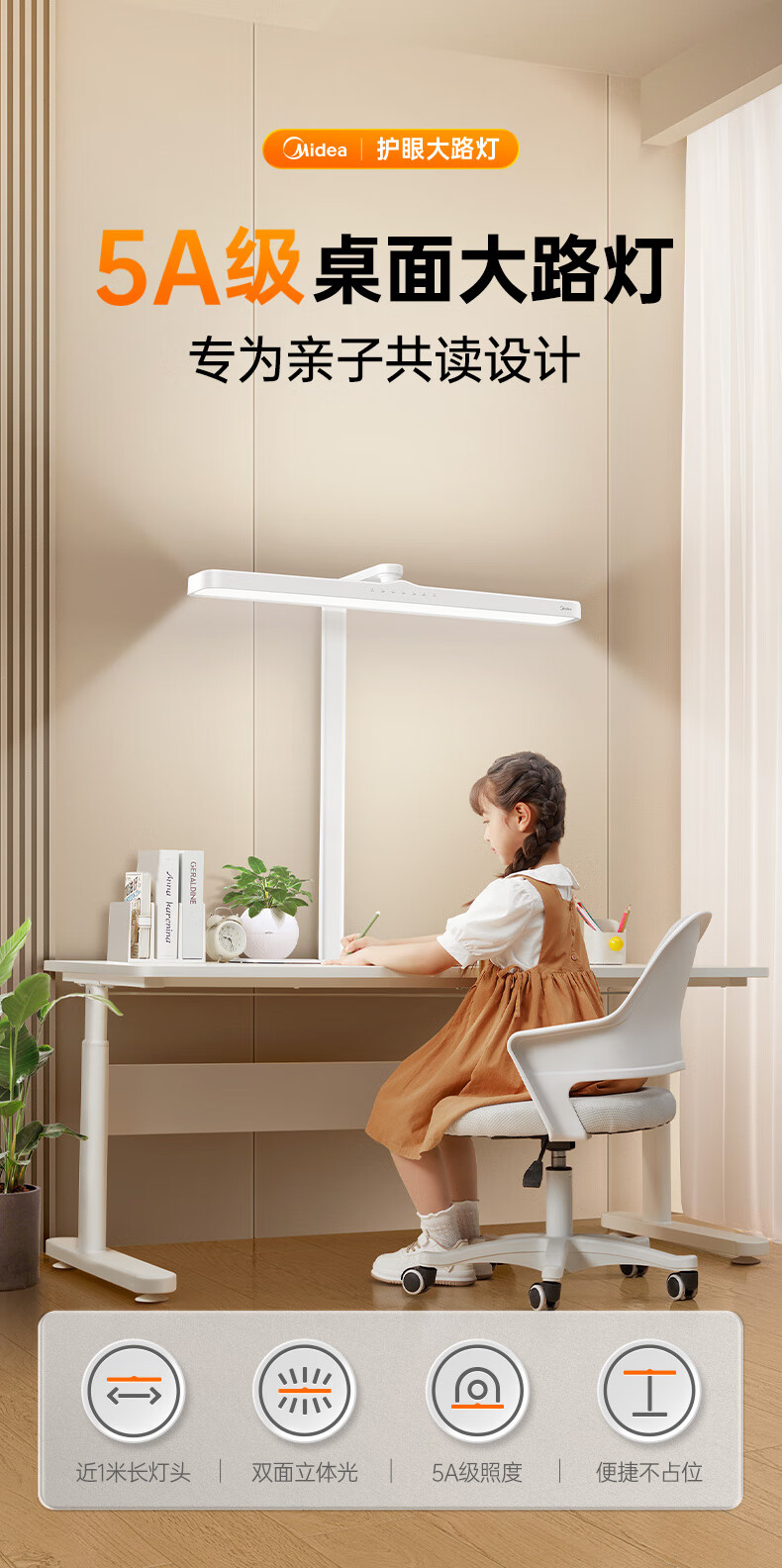 美的(Midea)护眼桌面大路灯阅读台灯学习卧室宿舍儿童房全光谱灯具无界H3