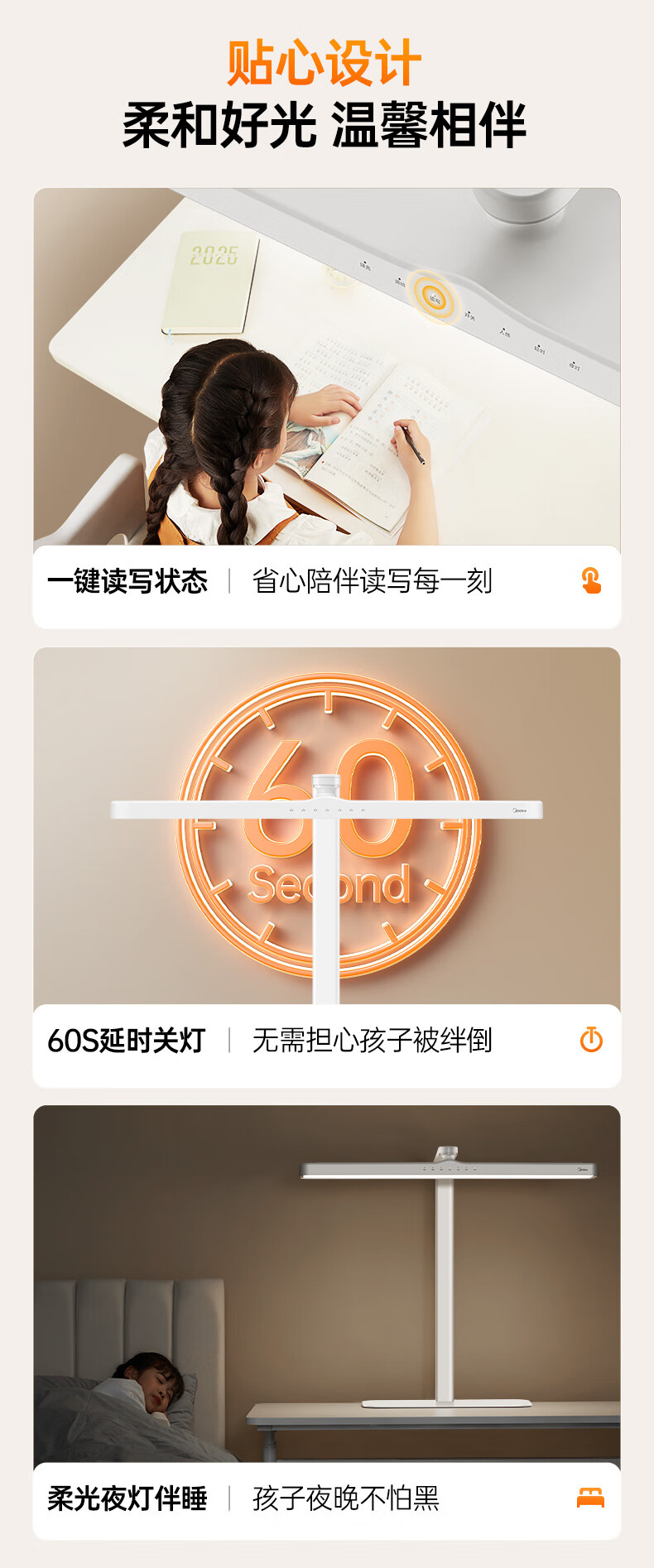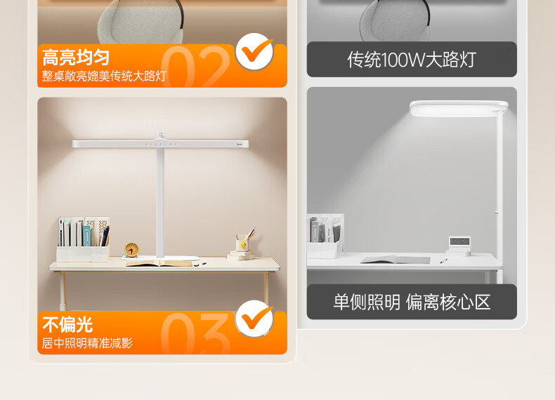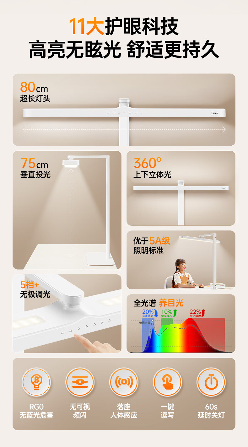 美的(Midea)护眼桌面大路灯阅读台灯学习卧室宿舍儿童房全光谱灯具无界H3