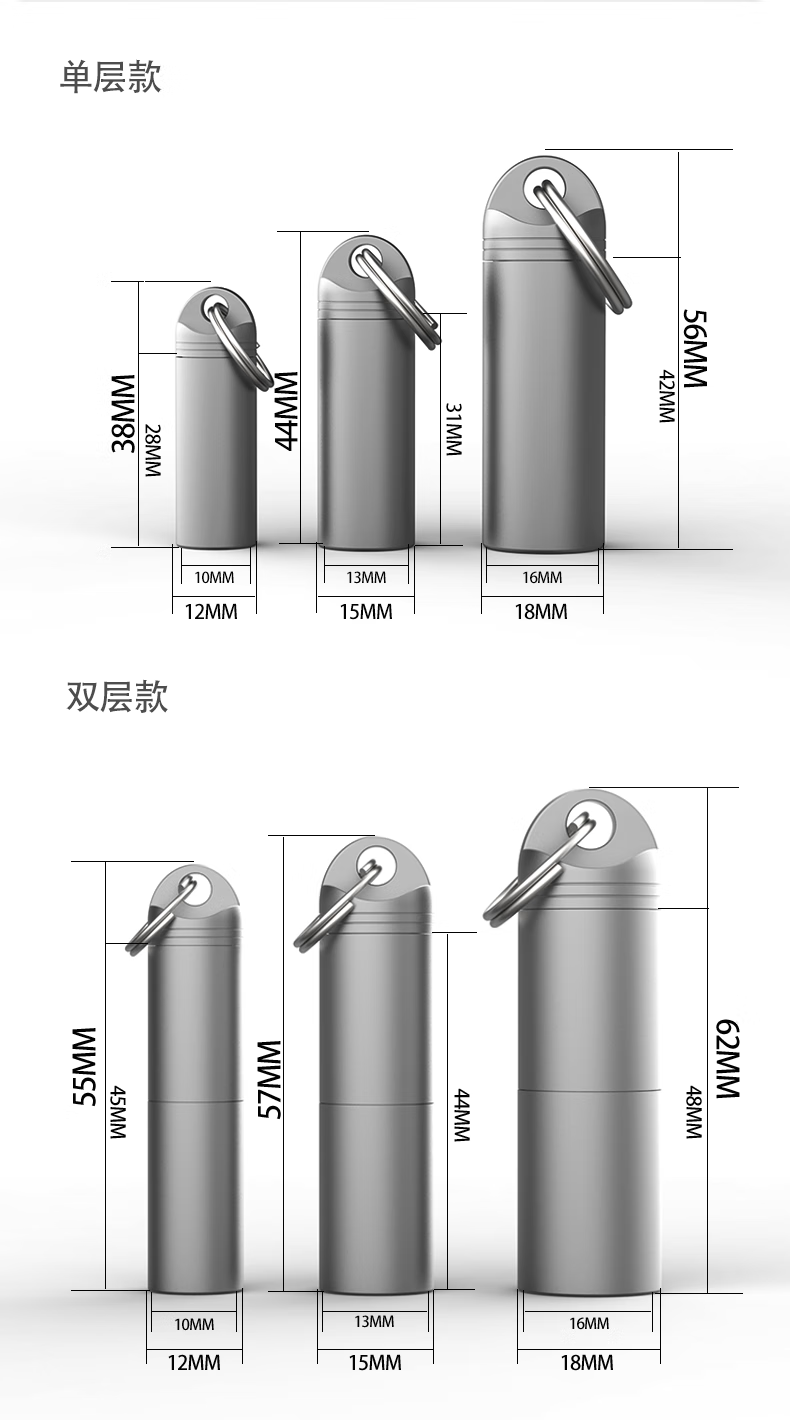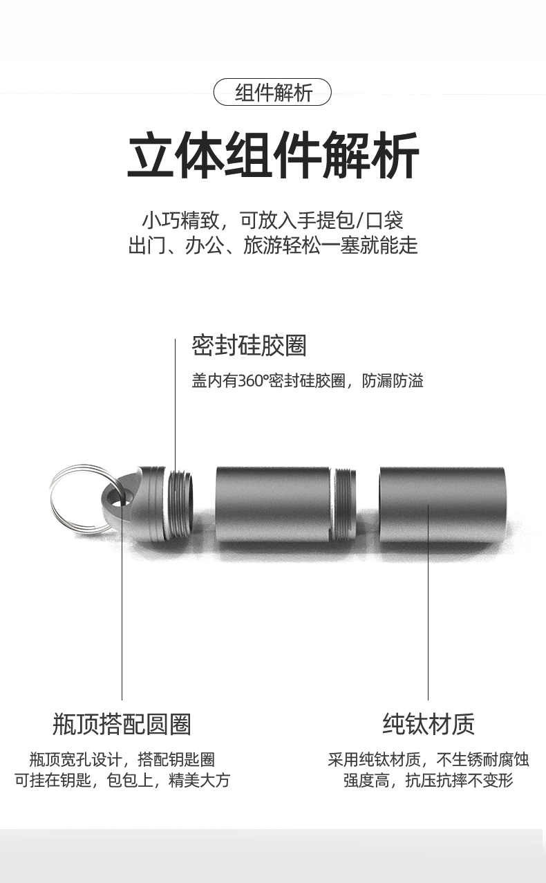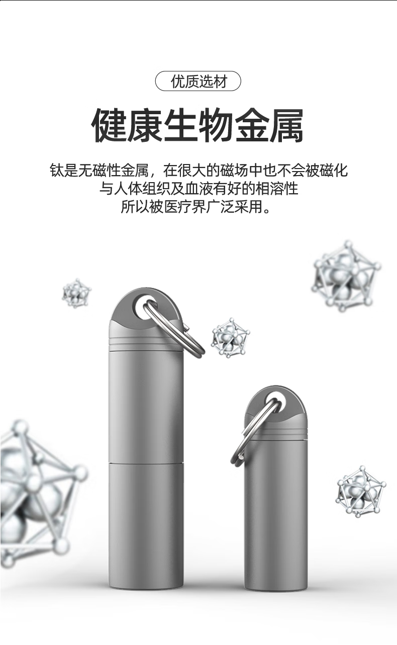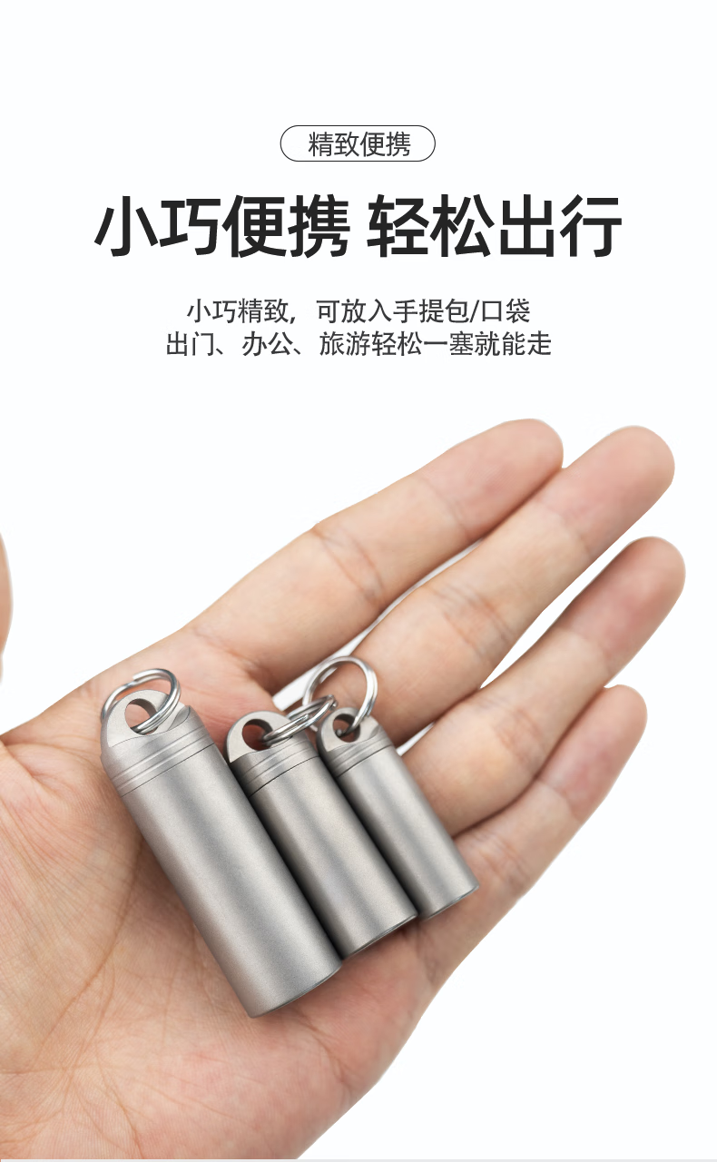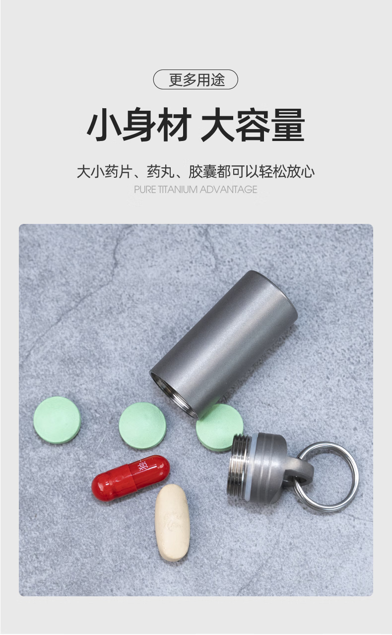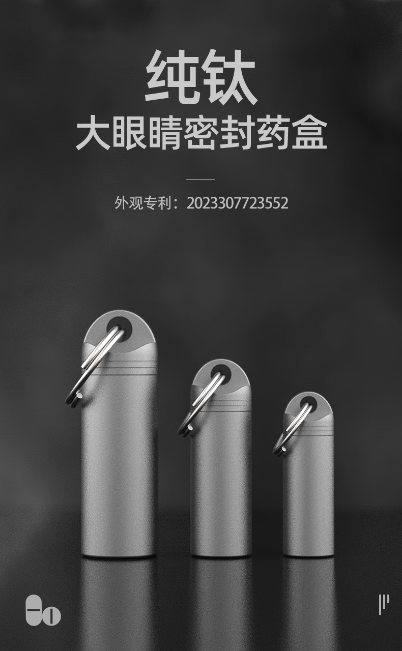 YORA小号双层纯钛药盒便携小药盒钛合金遮光密闭药瓶硝酸甘油钥匙扣