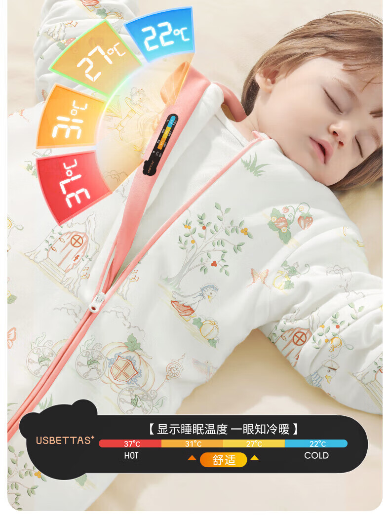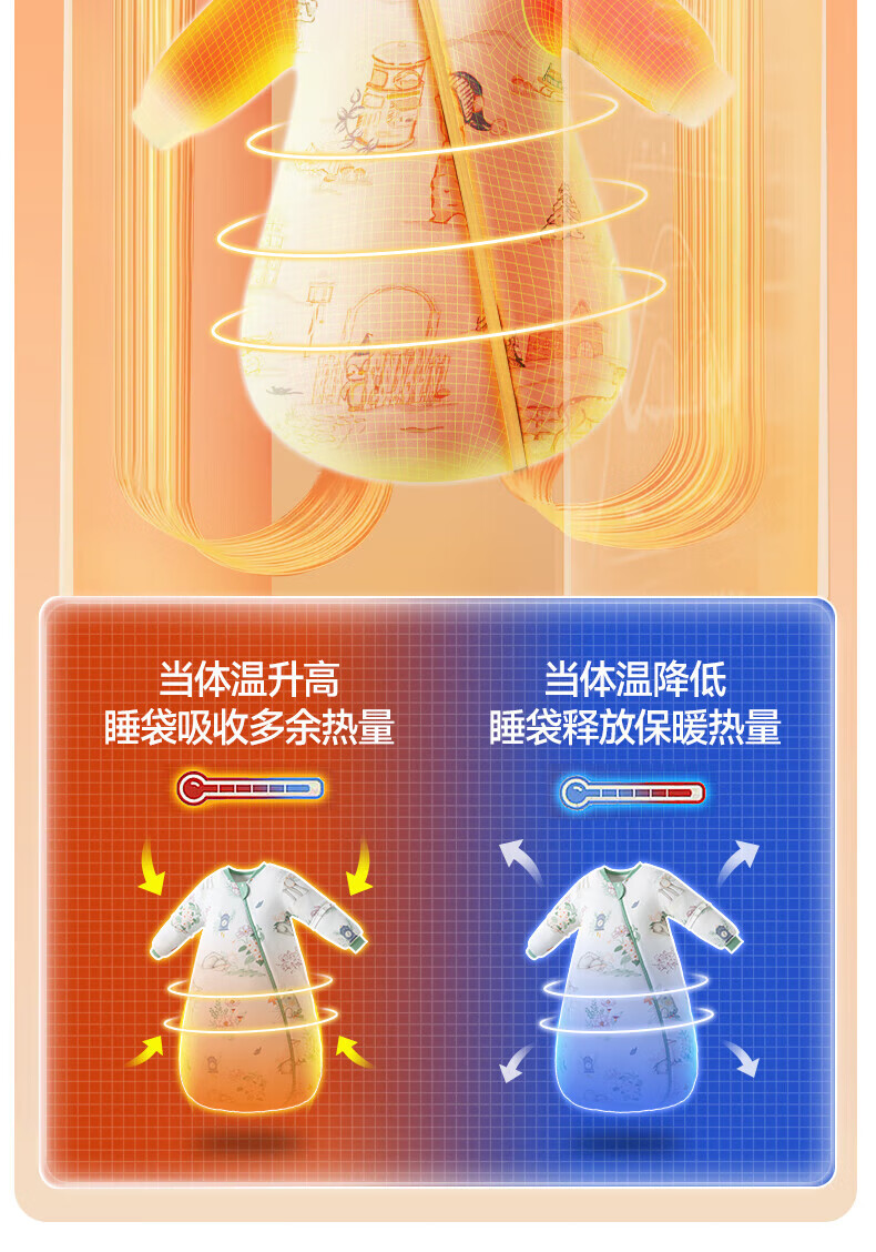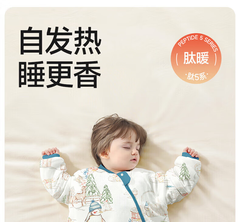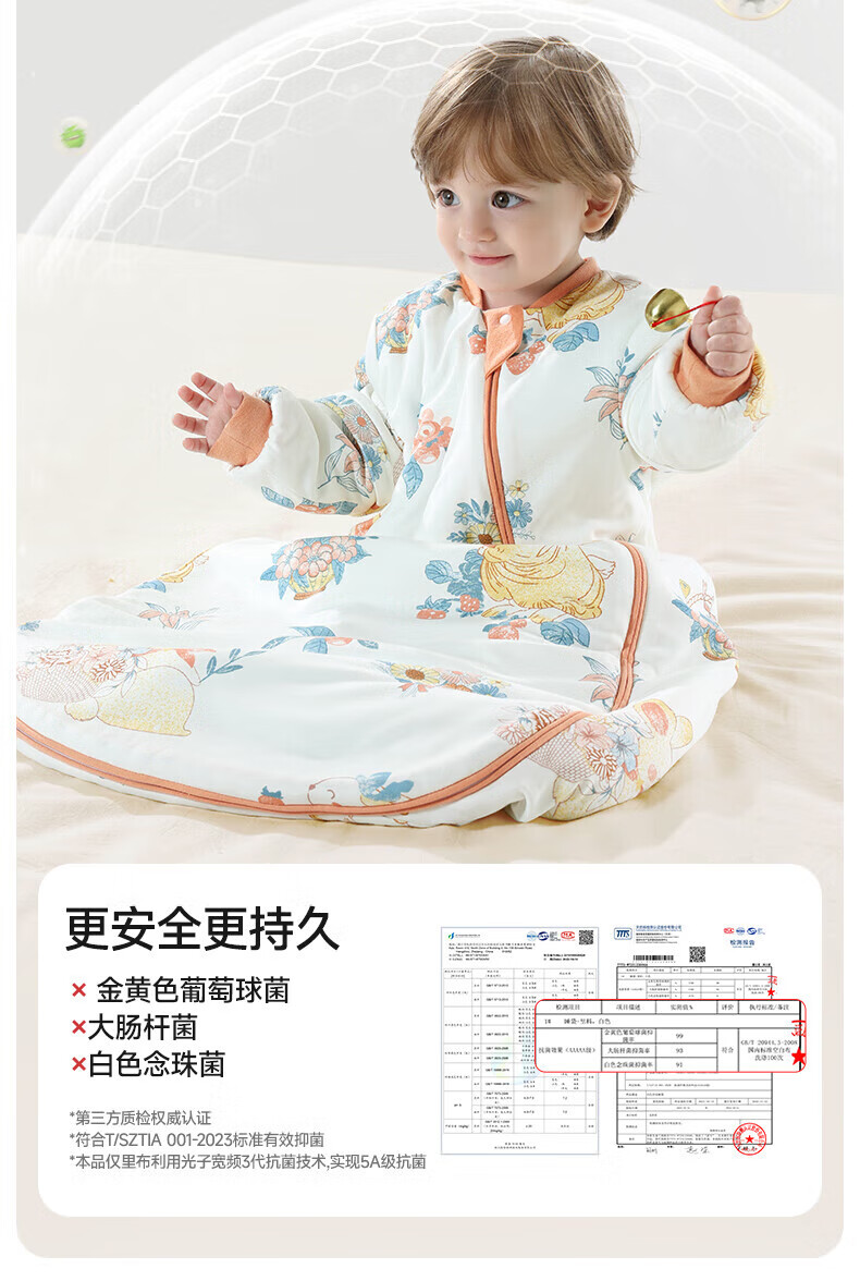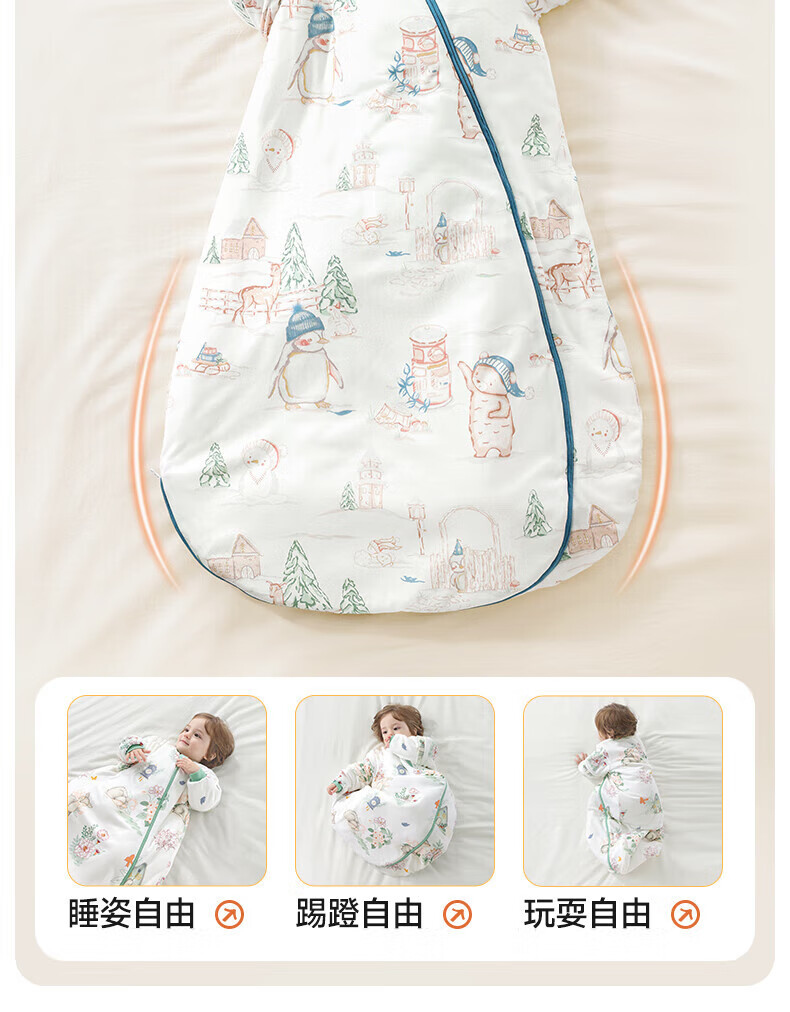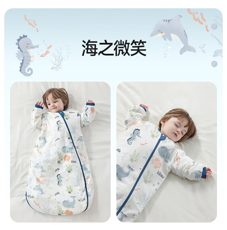 贝肽斯睡袋婴儿秋冬恒温新生儿童宝宝睡袋一体式防踢被惊跳包被发热神器 感温【秋冬中厚 室温10-20°】海之微笑 S码【适合身高55-70cm】建议年龄0-9个月
