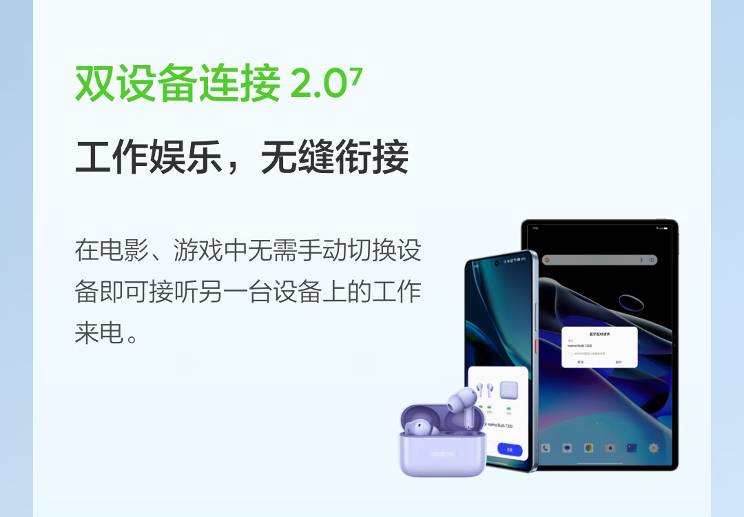 真我(realme)Buds T200【国家补贴】蓝牙无线耳机 50小时超长续航 智能主动降噪 AI智能 通用手机 冰晶白