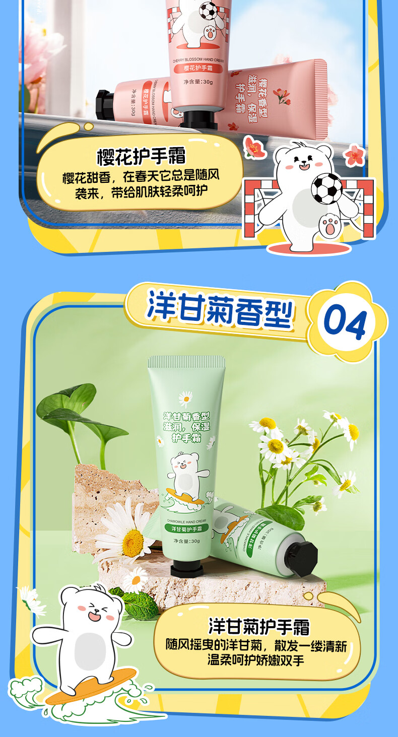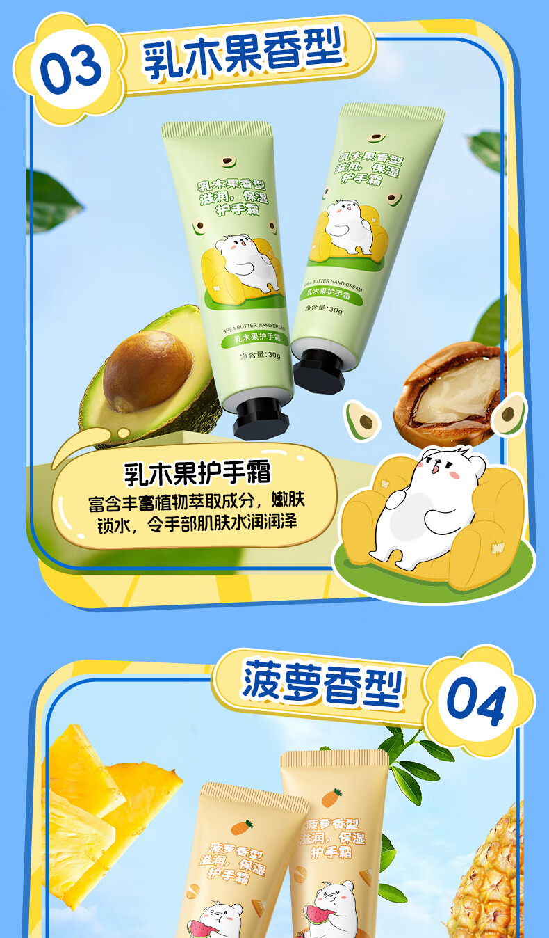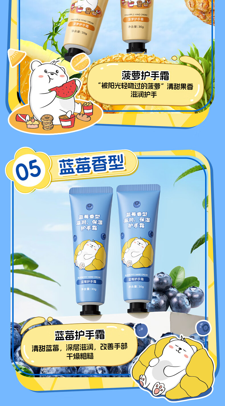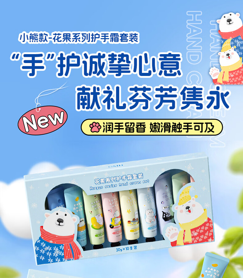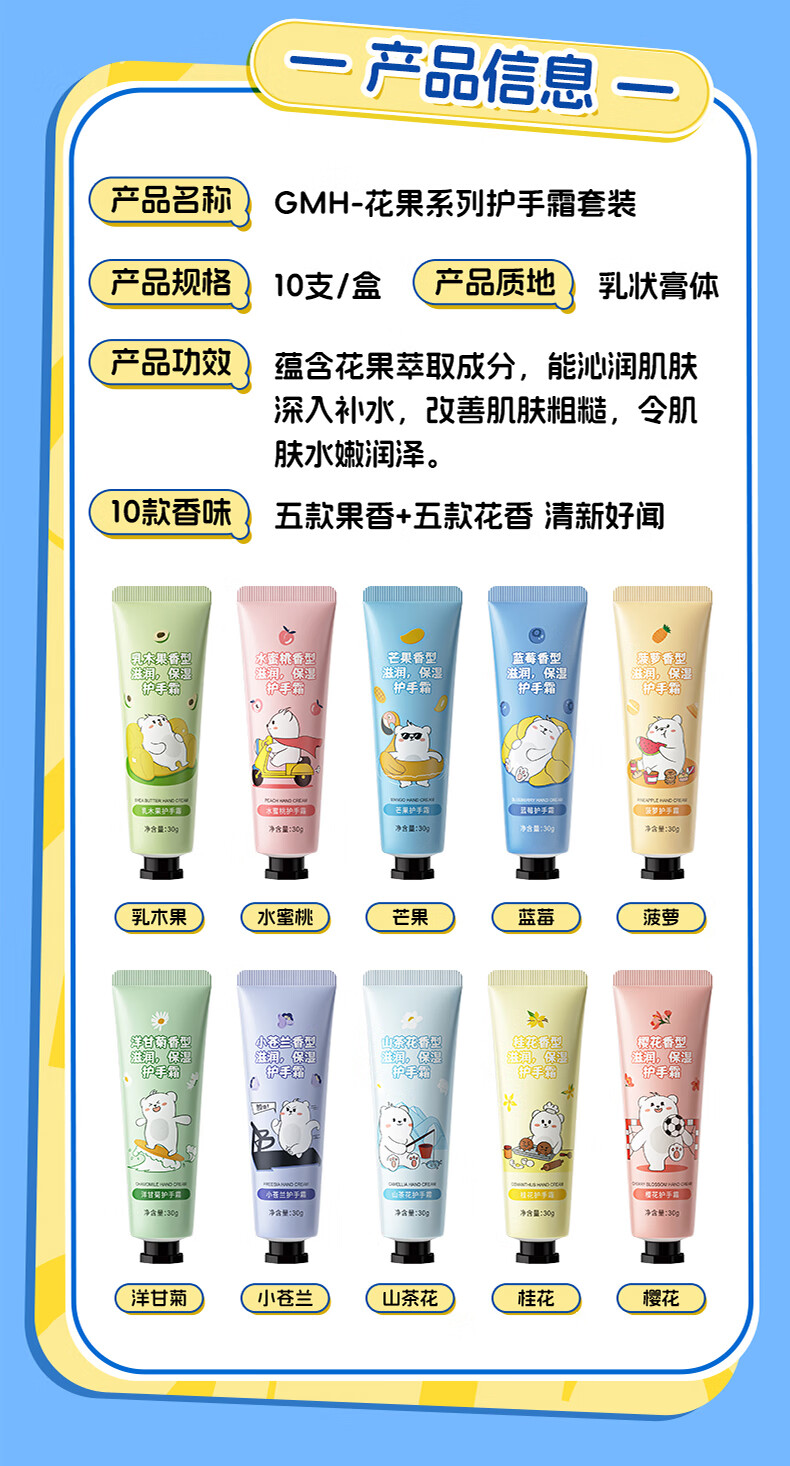 GMH花果香氛护手霜秋冬滋润保湿防干燥持久留香清爽不油腻护手乳男女 小熊手霜30gX10支【随机香味】
