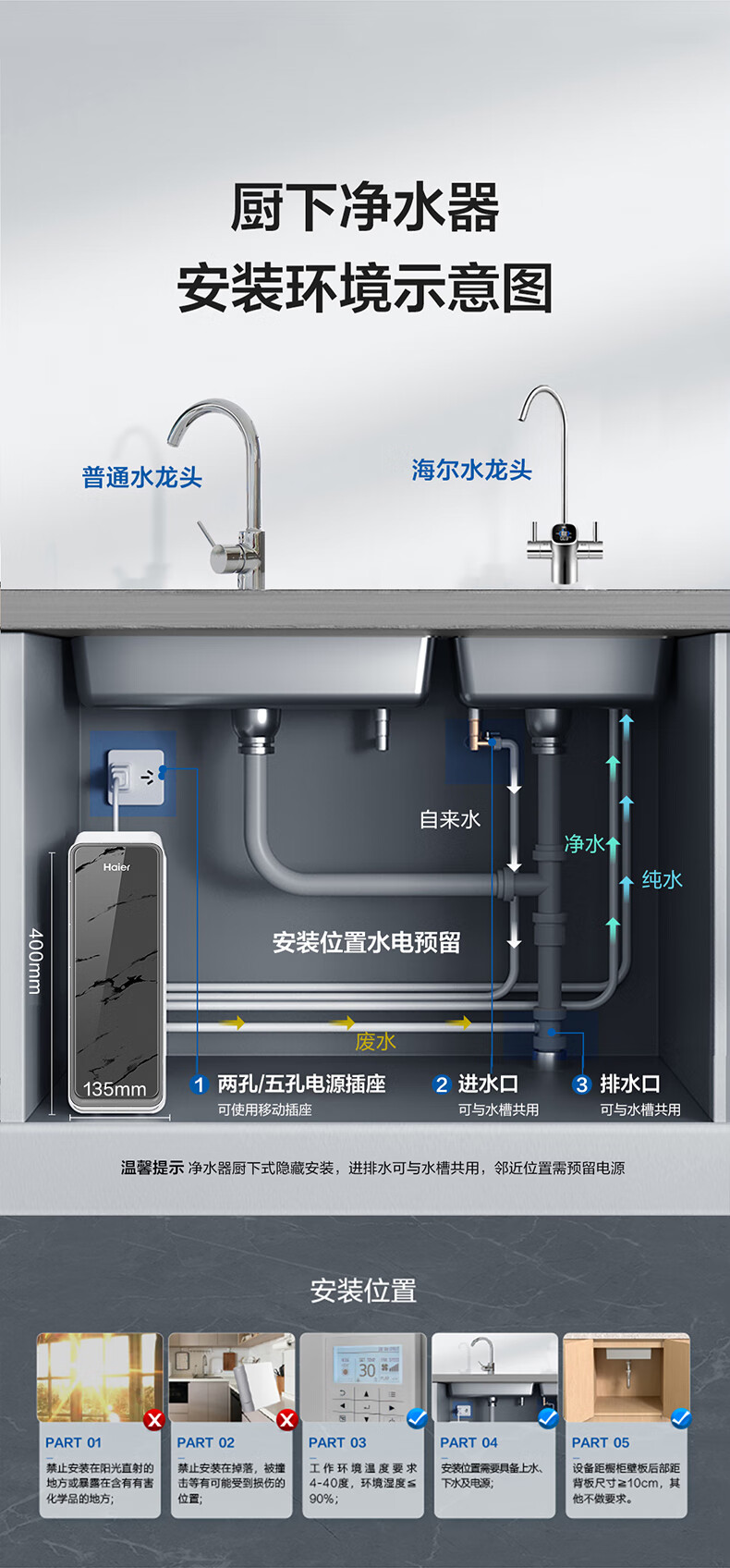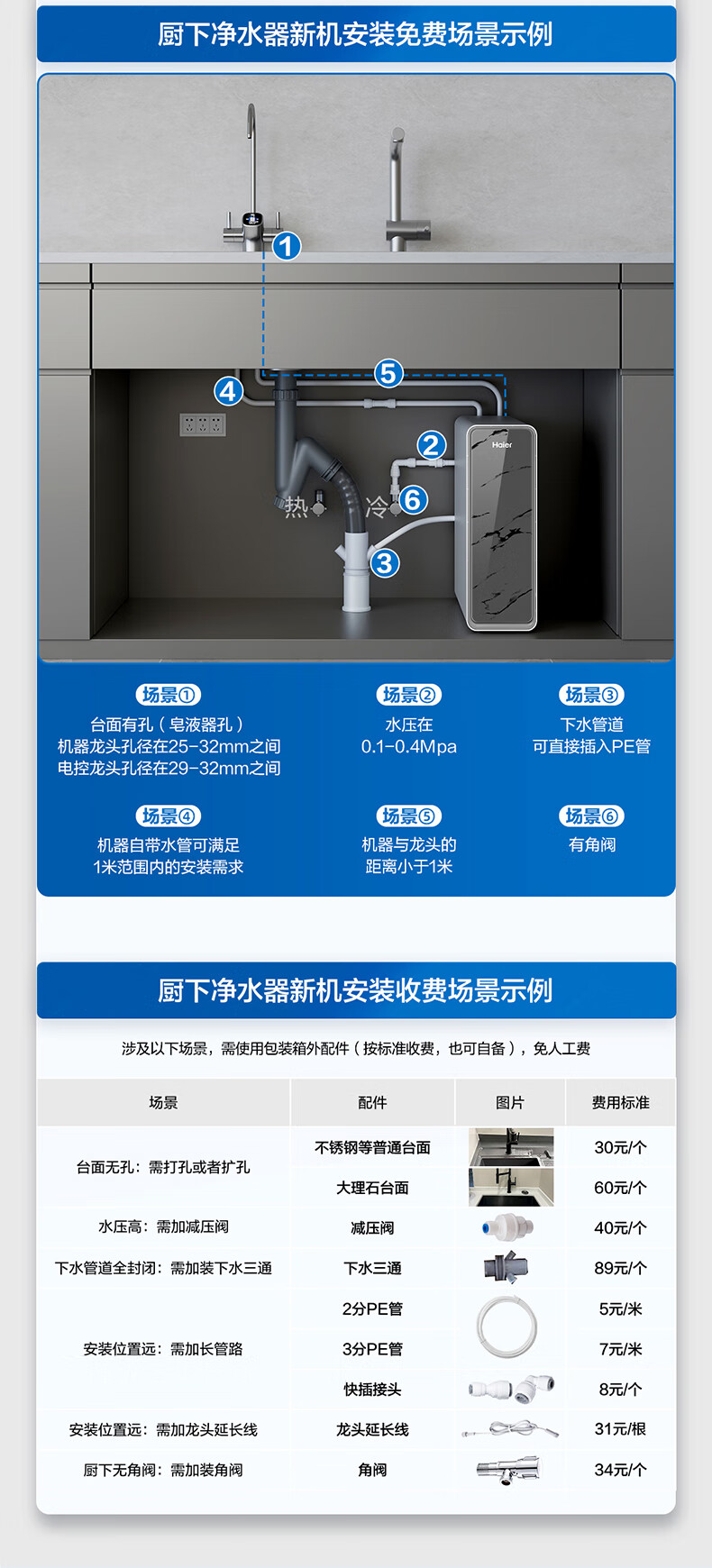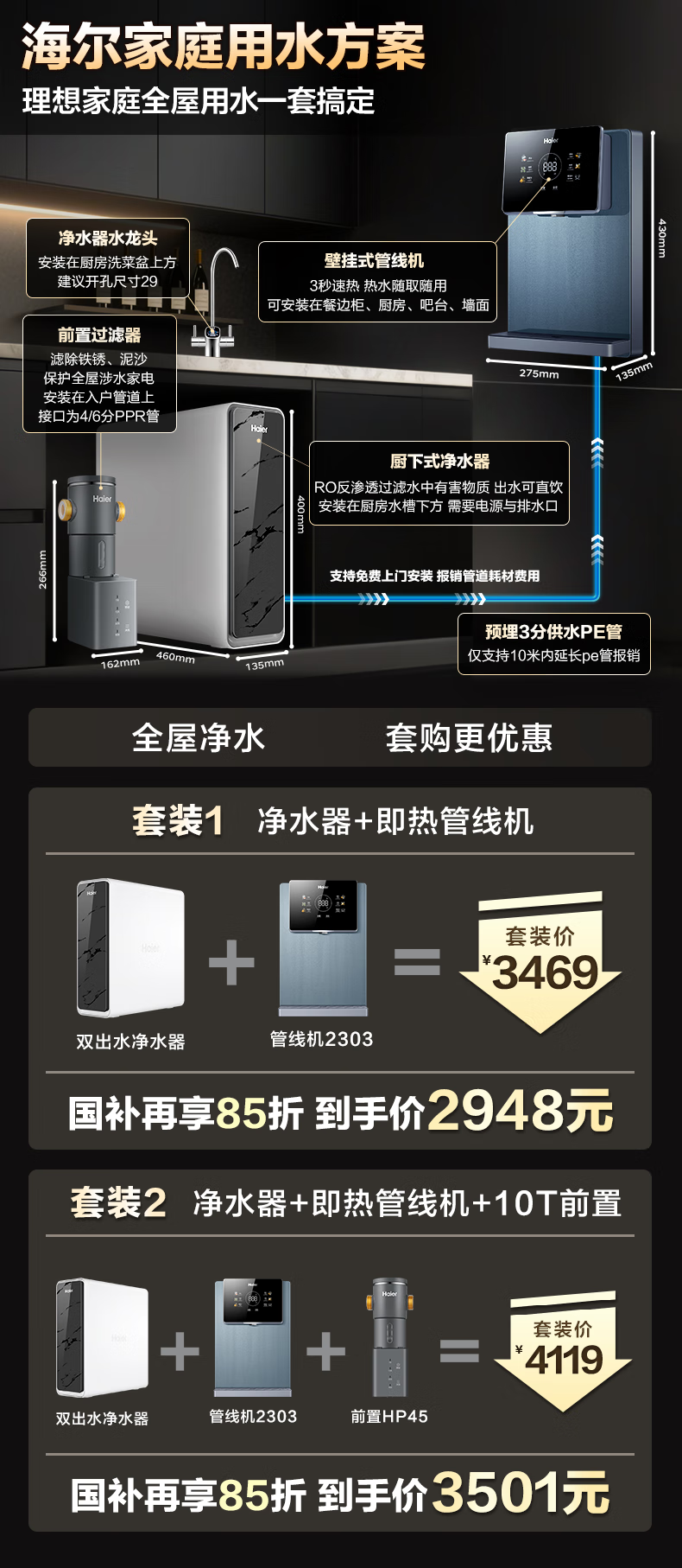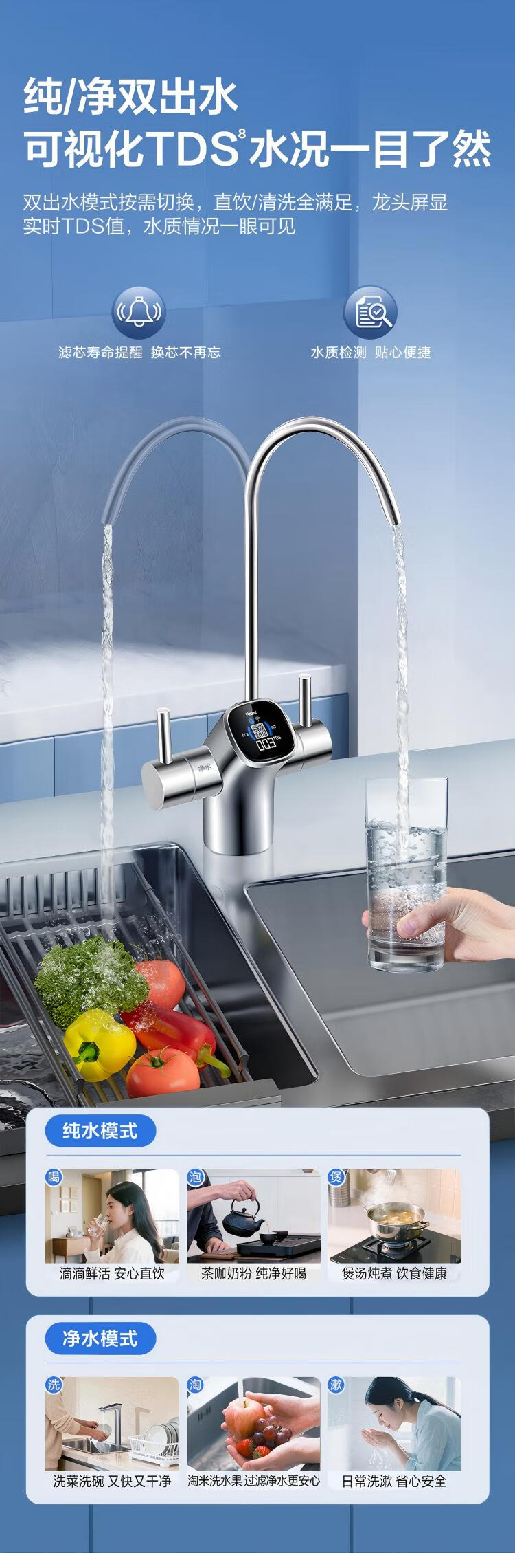 海尔(Haier)【国家补贴20%】双出水净水器家用鲜活水Pro瞬时1400G直饮水机6年长效RO反渗透厨下净水机净饮机 【旗舰双出水】鲜活水Pro1200G